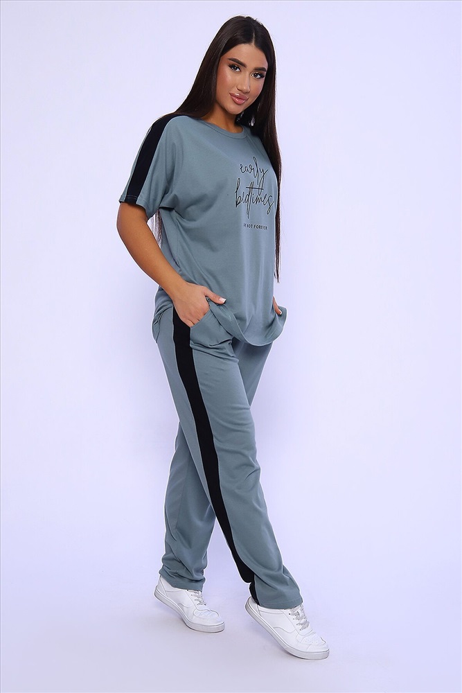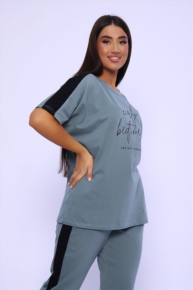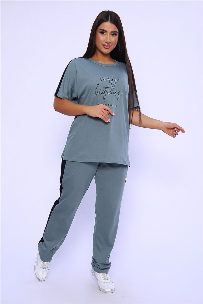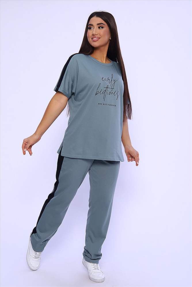ID товара: 945177 Состав: 100% Хлопок Сезон: Весна/Лето Длина: Средняя Фасон: Прямой Рукав: короткие Крой брючин: Зауженный Основная ткань: Хлопок Стиль: Повседневный Вид ткани: Кулирка Страна бренда: Россия Страна производства: Россия Женский костюм изготовлен из мягкого кулирного полотна, средней плотности. Костюм состоит из футболки и брюк. Футболка с округлой горловиной, обработанной окантовкой, по плечам есть лампасы, по бокам небольшие разрезы. Брюки прямые с лампасами, поясом есть карманы. Комментарии к товару
