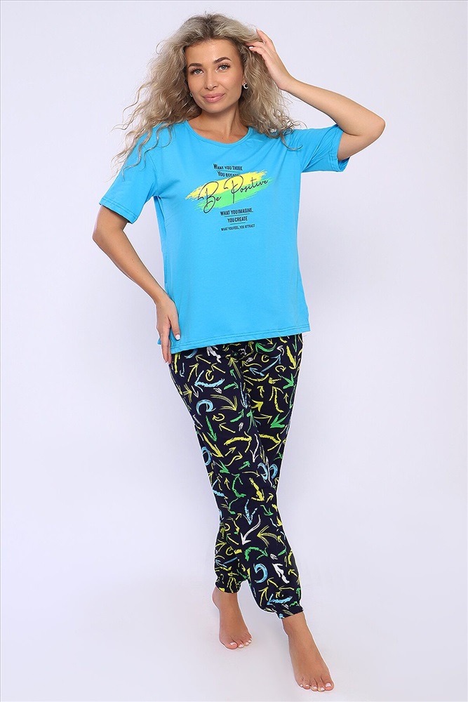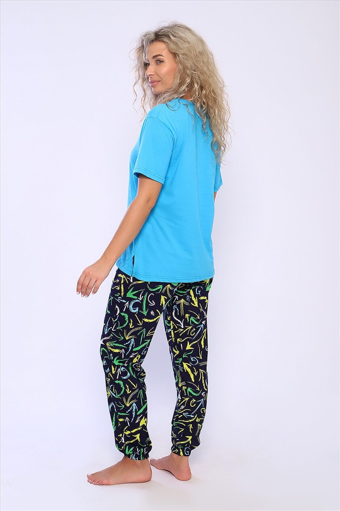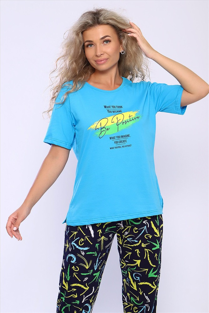 ID товара: 926839 Состав: 100% Хлопок Сезон: Весна/Лето Длина: Средняя Фасон: Прямой Рукав: короткие Крой брючин: Зауженный Основная ткань: Хлопок Стиль: Повседневный Вид ткани: Кулирка Страна бренда: Россия Страна производства: Россия Костюм футболка и брюки. Футболка с короткими рукавами и разрезами в боковых швах. Брюки на резинке внизу. Неотъемлемый элемент домашнего гардероба. Комментарии к товару