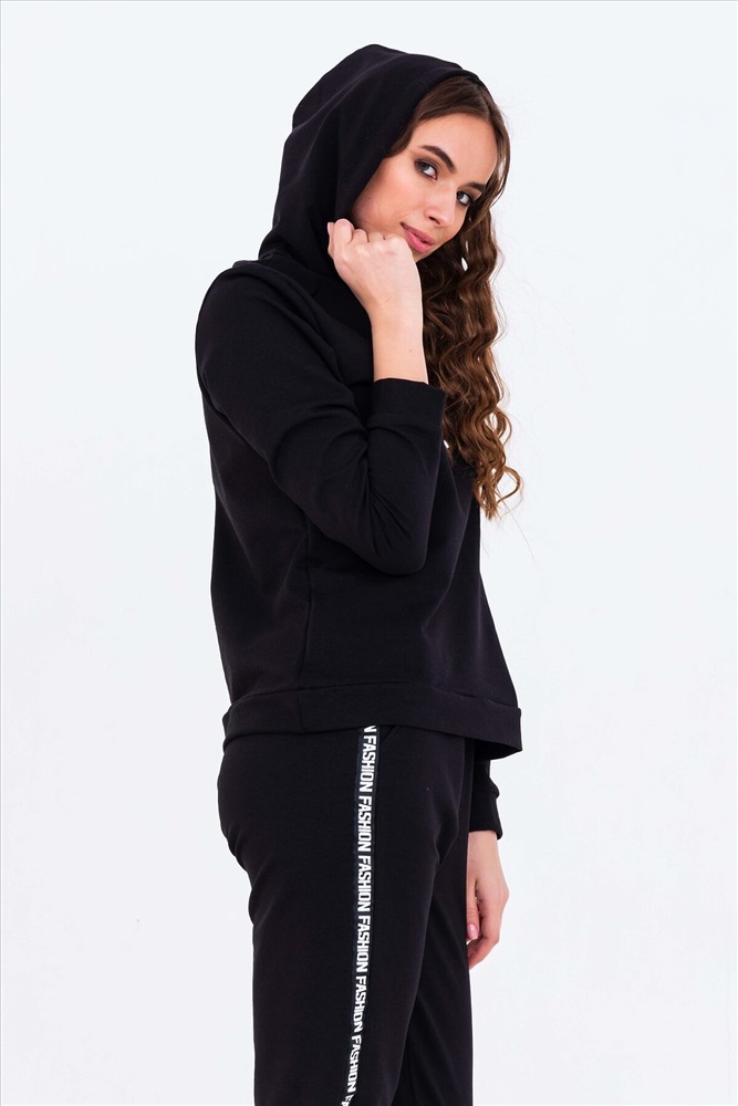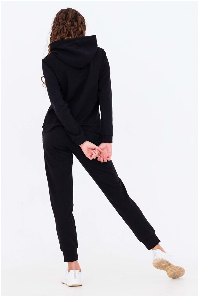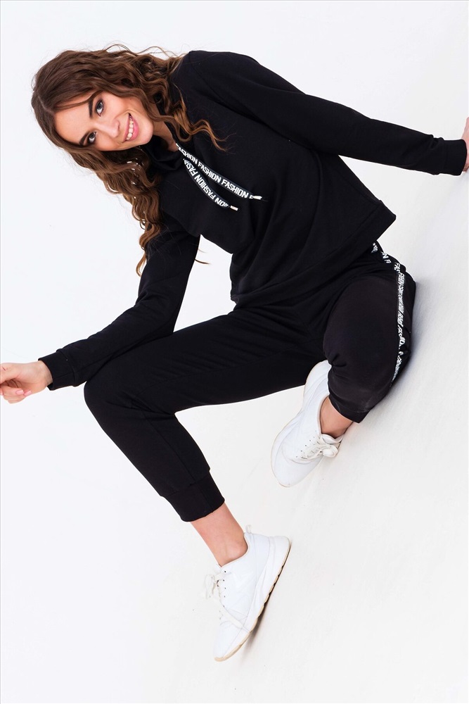 Стильный костюм с брюками сшит из трикотажного полотна высокого качества - футера двухнитки. Лицевая сторона футера гладкая, изнаночная - петлеобразная. Это полотно выполнено из хлопковой пряжи пенье, прошедшей обработку. Такой трикотаж устойчив к истиранию, появлению затяжек и катышков, меньше мнется и хорошо держит форму. Манжеты из резинки-кашкорсе. Лампасы с надписями визуально добавляют стройности. За счёт уникальных авторских лекал современный костюм выигрышно смотрится на стандартной фигуре любого размера. Практичный костюм в спортивном стиле будет удобным и комфортным во многих ситуациях. Универсальный костюм идеален для встреч с друзьями и прогулок, активного отдыха и любительского спорта, для поездок и путешествий, для дома, улицы, дачи, для похода в магазин и поездки на пикник. Этот модный качественный костюм с удобной посадкой отлично подойдет для невысоких девушек и женщин ростом до 165 см.