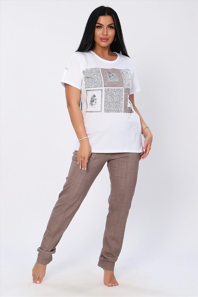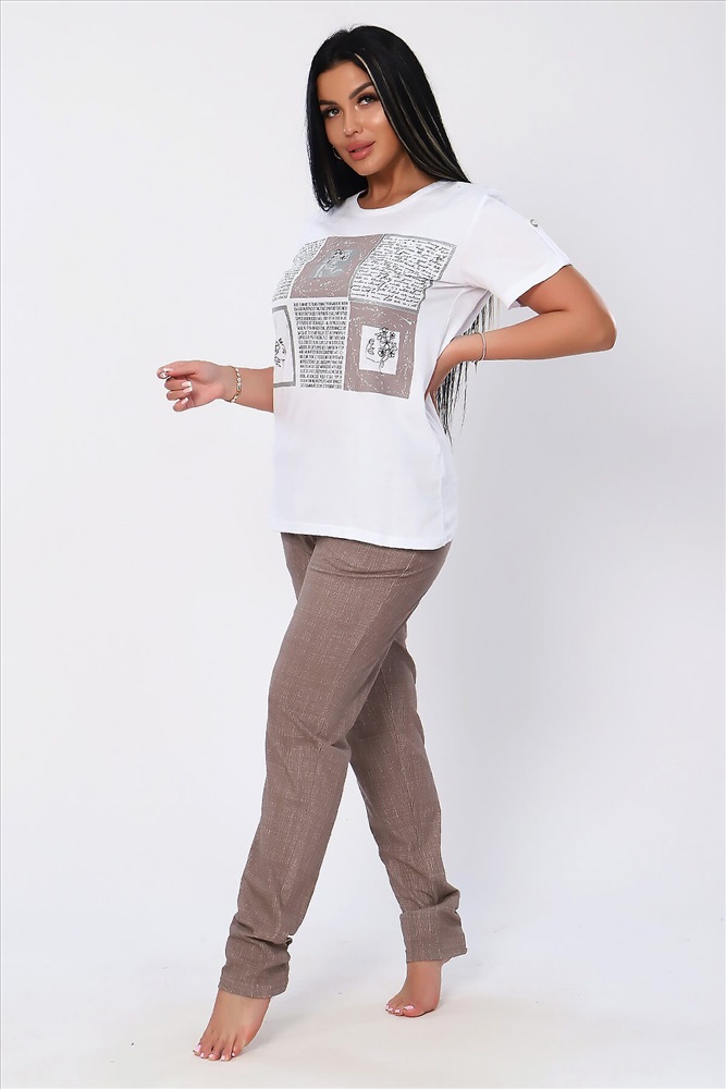 ID товара: 896624 Состав: 100% Хлопок Сезон: Весна/Лето Длина: Средняя Фасон: Прямой Рукав: Короткий Крой брючин: Зауженный Рисунок: Надпись Тип карманов: В боковом шве Основная ткань: Хлопок Стиль: Повседневный Вид ткани: Кулирка Страна бренда: Россия Страна производства: Россия Яркий, модный, стильный женский костюм из мягкого трикотажного полотна высокого качества. Состоит из легкой кофты белого цвета с ярким принтов на полочке и брюк. Универсальный и практичный повседневный костюм в спортивном стиле будет удобным и комфортным во многих ситуациях - прекрасно подойдет для встреч с друзьями и прогулок, активного отдыха и любительского спорта, для дома, улицы и дачи, для похода в магазин и поездки на пикник. Костюм представлен в трех стильных расцветках, чтобы модницам было из чего выбрать! Комментарии к товару