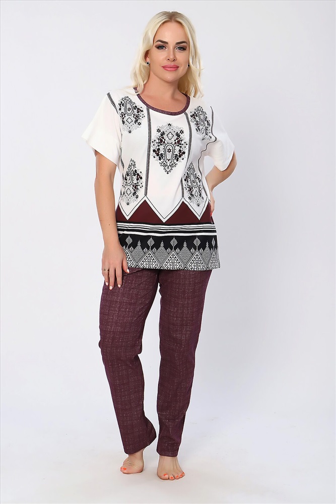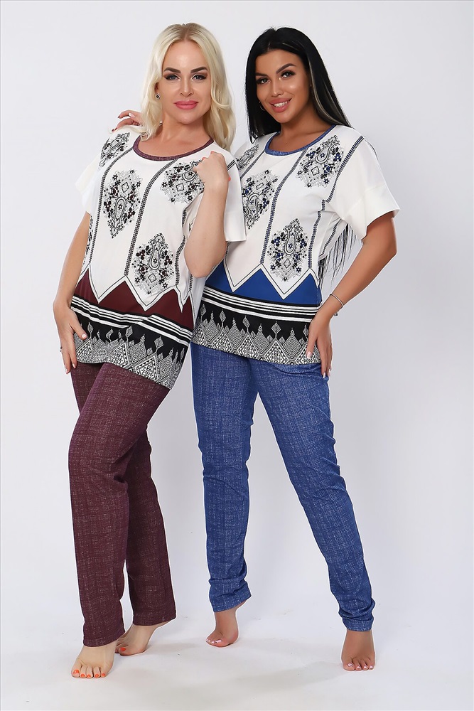 Производитель: НАТАЛИ ID товара: 896622 Состав: Хлопок 100% Сезон: Весна/Лето Длина: Средняя Фасон: Прямой Рукав: Короткий Крой брючин: Зауженный Рисунок: Орнамент Основная ткань: Хлопок Стиль: Повседневный Вид ткани: Кулирка Страна бренда: Россия Страна производства: Россия