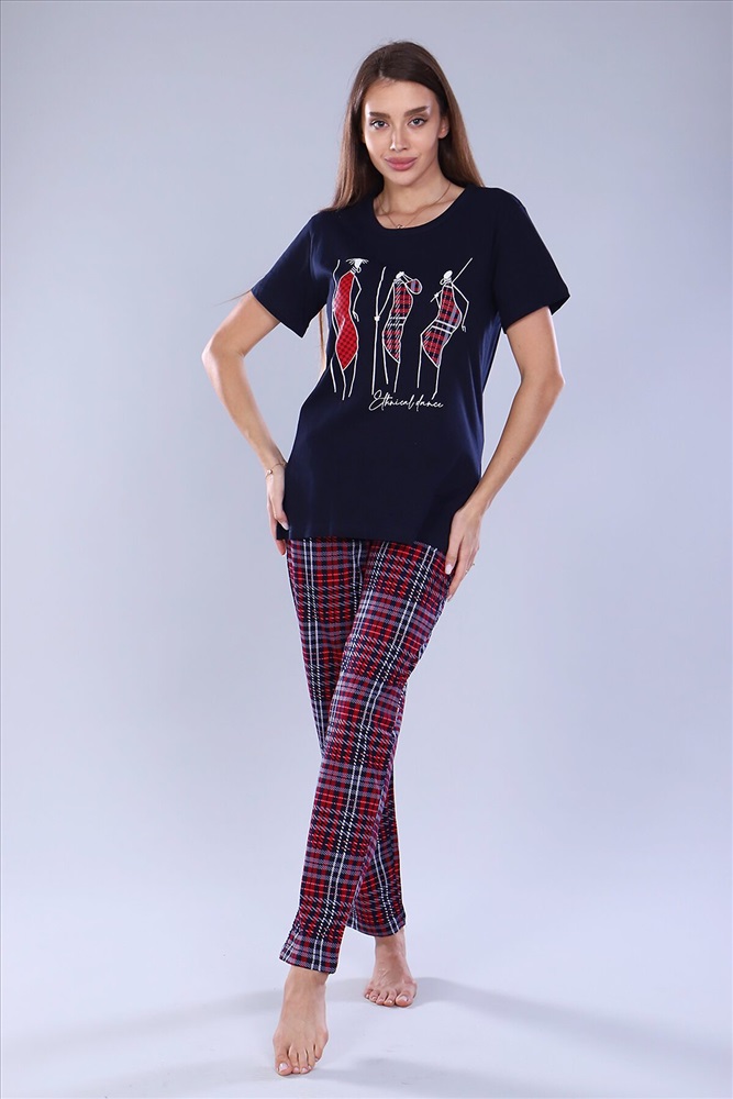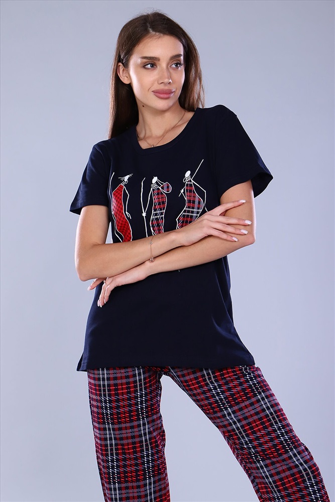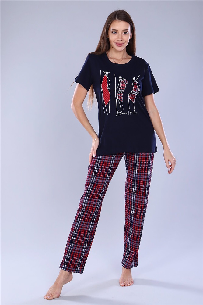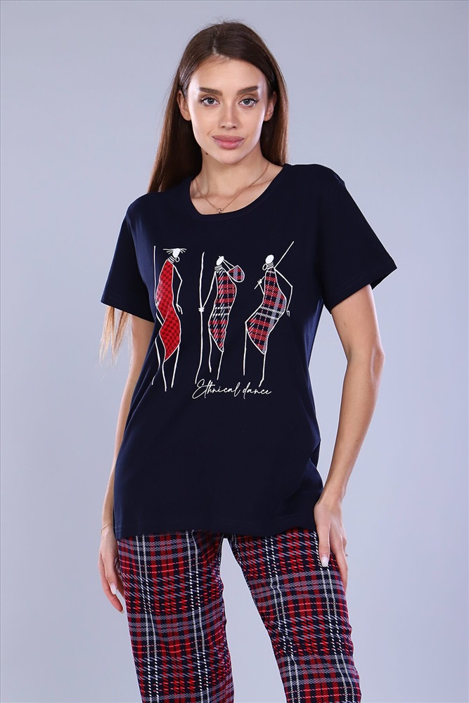 ID товара: 886555 Состав: Хлопок 100% Сезон: Весна/Лето Длина: Средняя Фасон: Прямое Рукав: Короткие Крой брючин: Прямой Рисунок: Клетка Тип карманов: В шве Основная ткань: Хлопок | Кулирка Стиль: Повседневный Страна бренда: Россия Страна производства: Россия Удобный женский костюм с брюками свободного кроя, который прекрасно подходит для дома, прогулок и повседневной носки. Легкая и приятная к телу модель станет залогом приятного времяпровождения. Дышащий хлопковый материал, удобное лекало - все это позволит Вам чувствовать себя в нашем костюме удобно и комфортно. Брюки свободные, с двумя боковыми карманами, на широком поясе с резинкой, выполнены из нестареющей шотландки. На полочке футболки принт в тон брюкам, изображающий группу африканских аборигенов. Яркий и стильный костюм несомненно будет радовать хозяйку и поднимать настроение ей и окружающим! Комментарии к товару