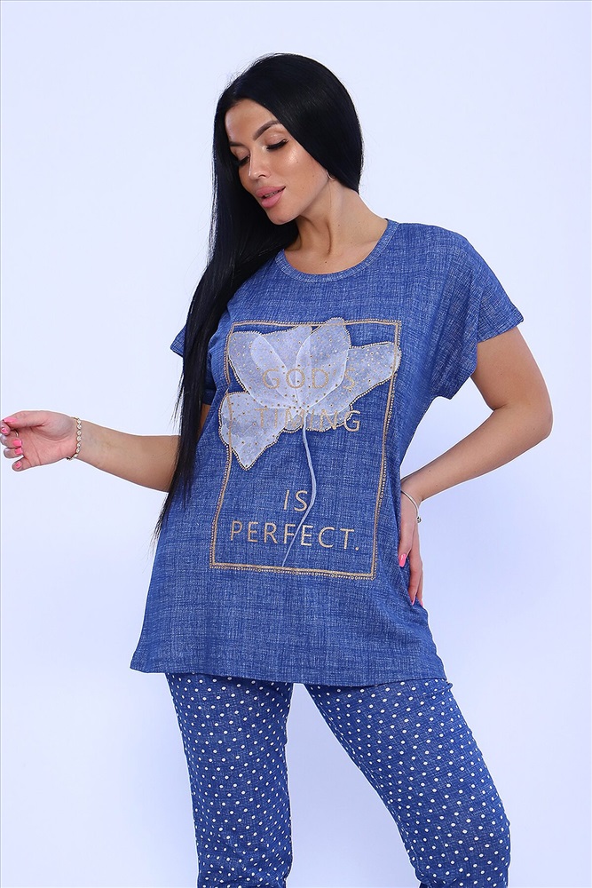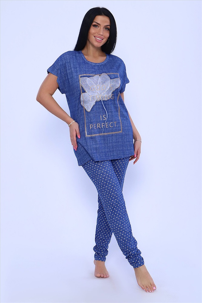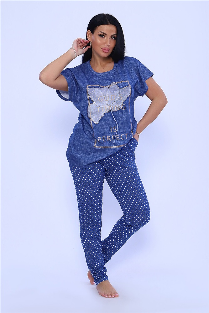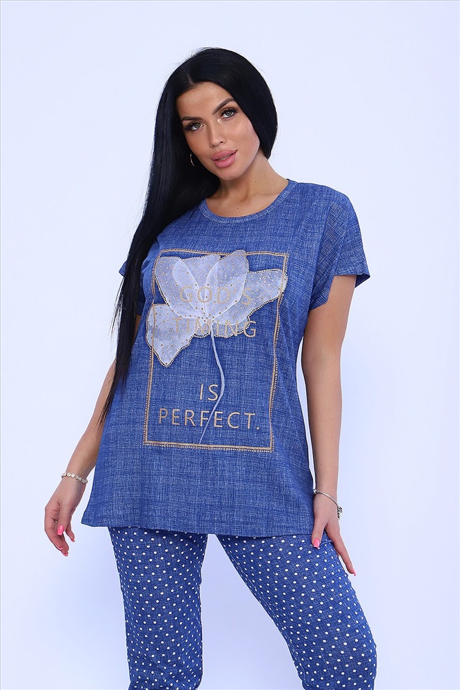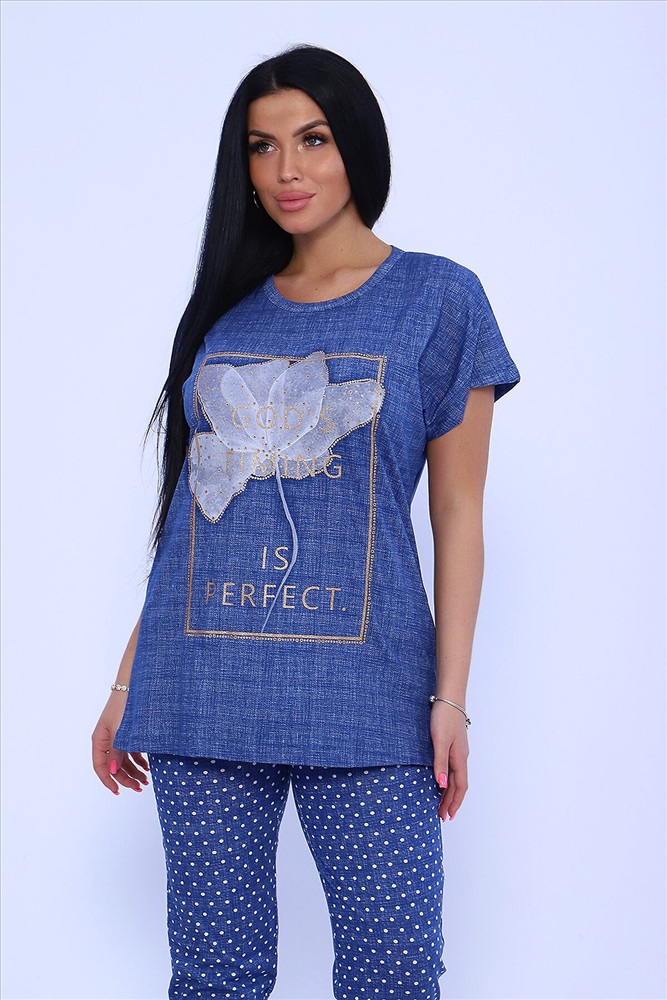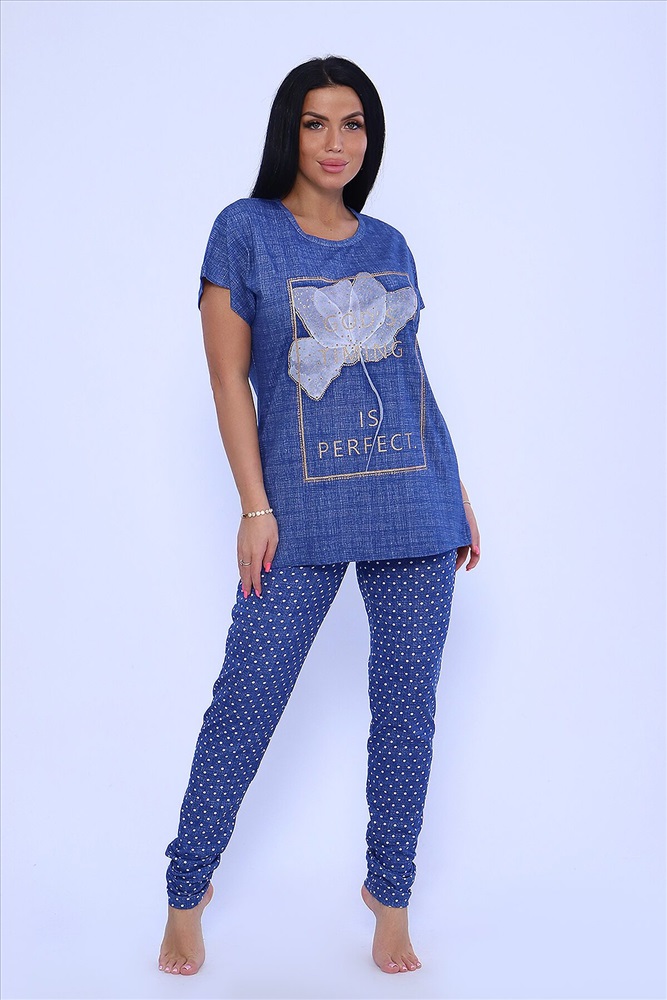 ID товара: 953912 Состав: Хлопок 100% Сезон: Демисезон Длина: Средняя Фасон: Прямой Рукав: короткие Основная ткань: Хлопок Стиль: Повседневный Вид ткани: Кулирка Страна бренда: Россия Страна производства: Россия Классический и удобный трикотажный костюм с брюками из 100%-го хлопка! В комплекте костюма представлены кофта свободного кроя и брюки универсальной посадки. Кофта украшена ярким принтом в виде дивного и нежного цветка в золоченой рамке. Костюм - идеальный вариант домашней одежды для женщин, также прекрасно подойдет и для повседневной носки. Комментарии к товару