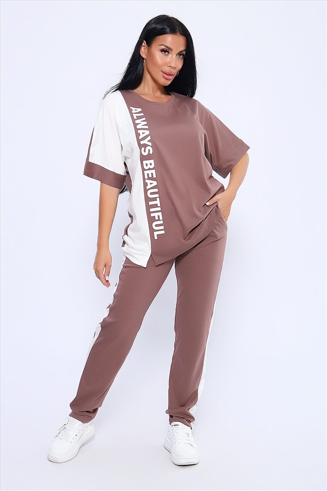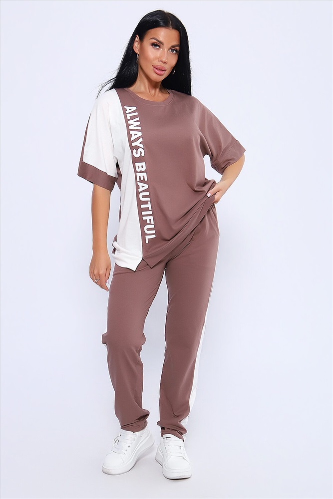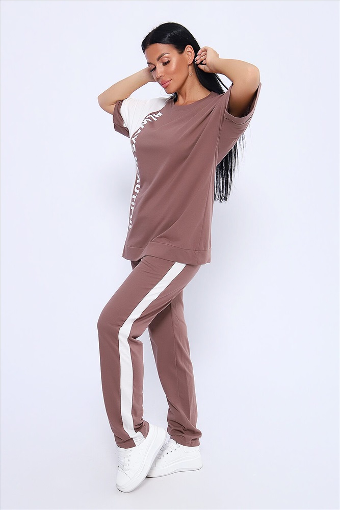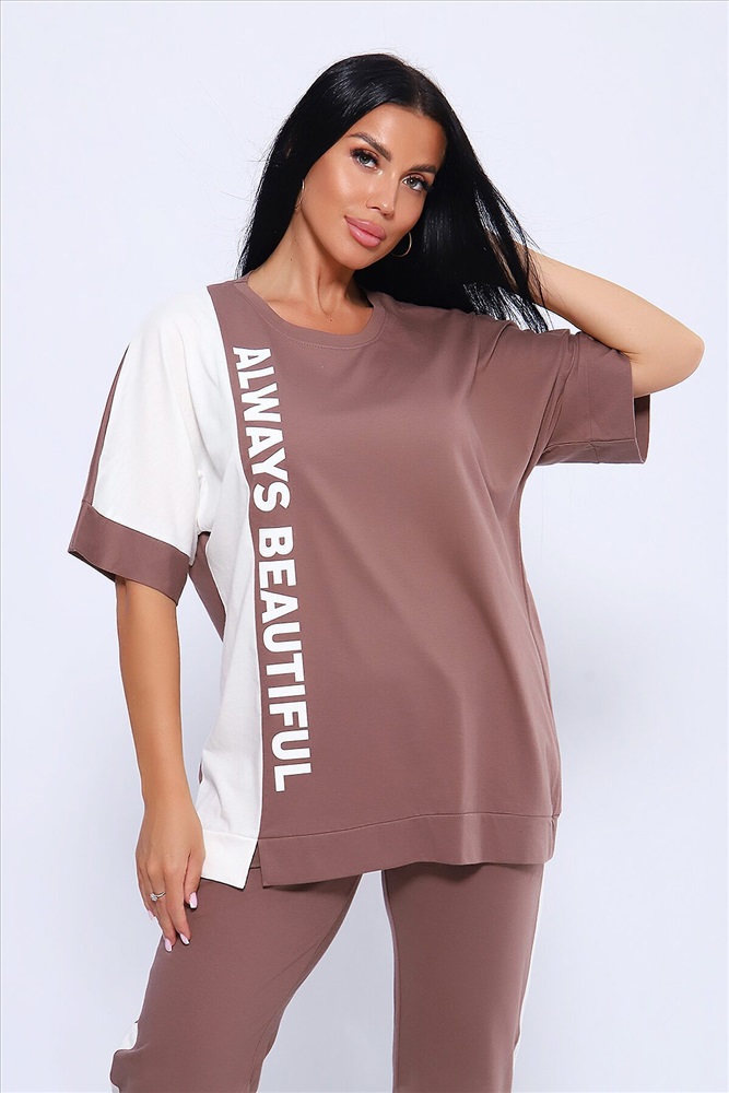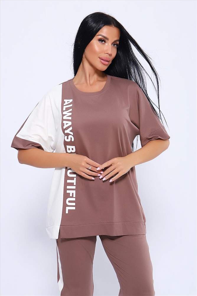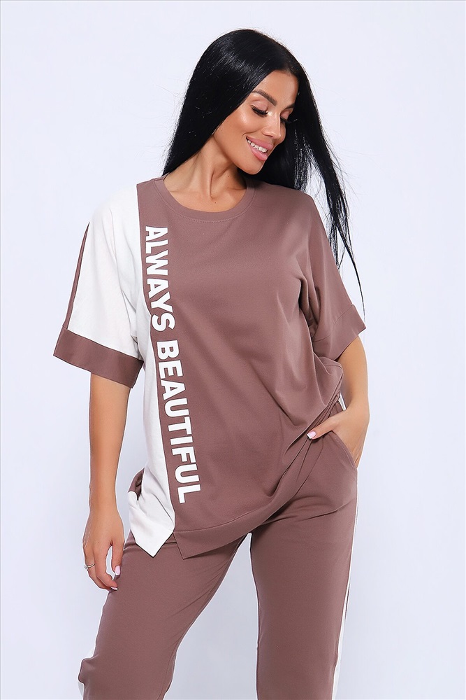 ID товара: 1027659 Состав: Хлопок 100% Сезон: Весна/Лето Фасон: Оверсайз Рукав: Короткие Крой брючин: Прямой Рисунок: Надпись Тип карманов: Прорезные Вид ткани: Кулирка Страна бренда: Россия Страна производства: Россия Эффектный костюм в спортивном стиле из трикотажного полотна ярких оттенков. В комплекте представлена кофта свободного кроя со спущенным рукавом и узкие, но не обтягивающие брюки. Изюминкой костюма является сочетание контрастных цветов в дизайне кофты в виде крупных латинских букв и целых вставок. Трикотажные костюмы стали одним из самых популярных и востребованных атрибутов в гардеробе современных женщин, так как не только подчеркивают стиль и индивидуальность, но и обеспечивают комфорт и удобство в повседневной жизни. Комментарии к товару
