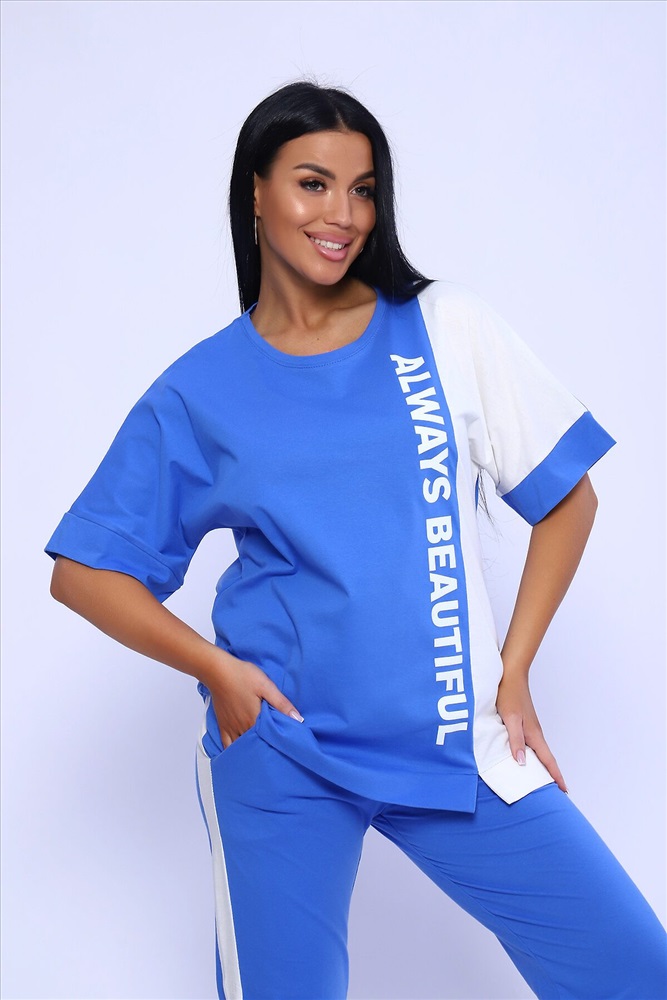 ID товара: 980916 Состав: Хлопок 100% Сезон: Весна/Лето Длина: Полная Фасон: Полуприлегающий Рукав: короткие Крой брючин: Зауженный Рисунок: Надпись Тип карманов: С отрезным бочком Декоративные элементы: Принт Основная ткань: Хлопок Стиль: Спортивный Вид ткани: Кулирка Страна бренда: Россия Страна производства: Россия Эффектный костюм в спортивном стиле из трикотажного полотна ярких оттенков. В комплекте представлена кофта свободного кроя со спущенным рукавом и узкие, но не обтягивающие брюки. Изюминкой костюма является сочетание контрастных цветов в дизайне кофты в виде крупных латинских букв и целых вставок. Трикотажные костюмы стали одним из самых популярных и востребованных атрибутов в гардеробе современных женщин, так как не только подчеркивают стиль и индивидуальность, но и обеспечивают комфорт и удобство в повседневной жизни. Комментарии к товару
