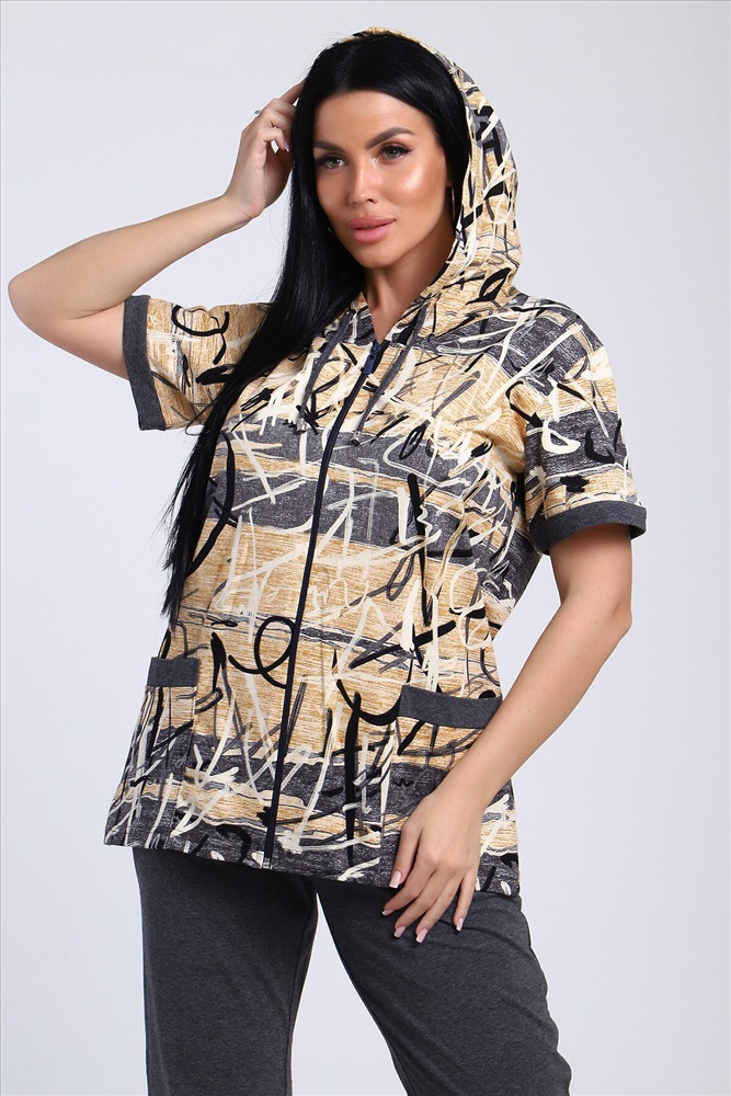 Производитель: НАТАЛИ ID товара: 986668 Состав: Хлопок 100% Сезон: Весна/Лето Длина: Полная Фасон: Полуприлегающий Рукав: длинные Вид застежки: Молния Крой брючин: Прямой Рисунок: Абстракция Тип карманов: Накладные Декоративные элементы: С капюшоном Основная ткань: Хлопок Стиль: повседневный Вид ткани: Кулирка Страна бренда: Россия Страна производства: Россия