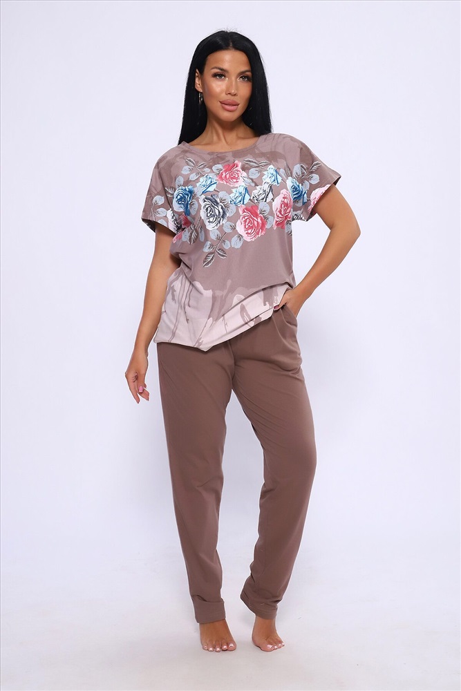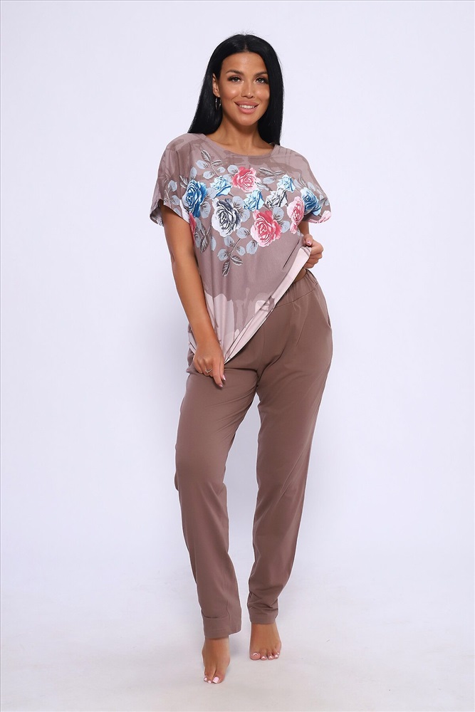 Производитель: НАТАЛИ ID товара: 1018665 Состав: Хлопок 100% Сезон: Весна/Лето Фасон: Свободный крой Рукав: Короткие Крой брючин: Прямой Рисунок: растительный, цветочный Тип карманов: Прорезные Вид ткани: Кулирка Страна бренда: Россия Страна производства: Россия