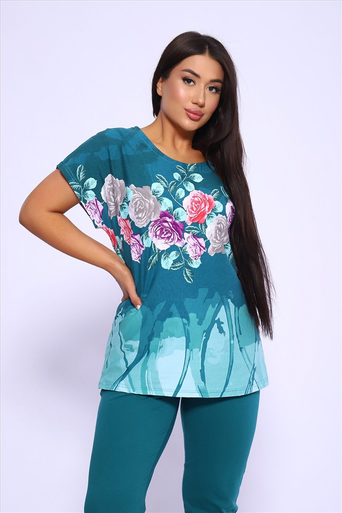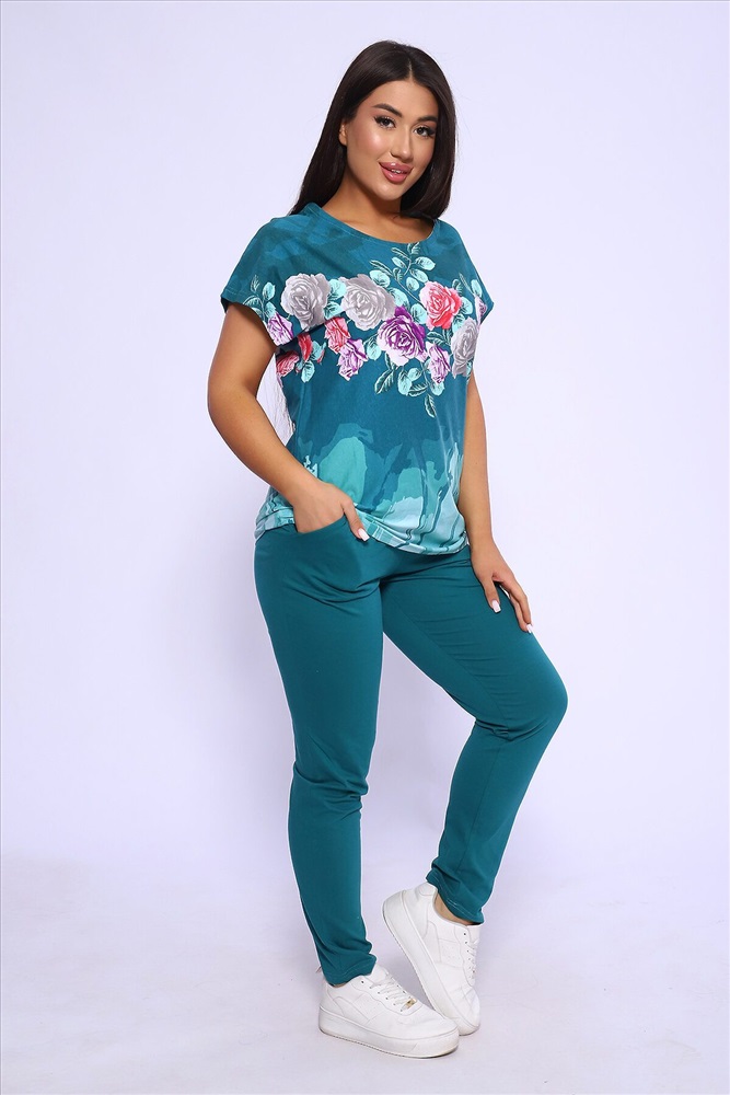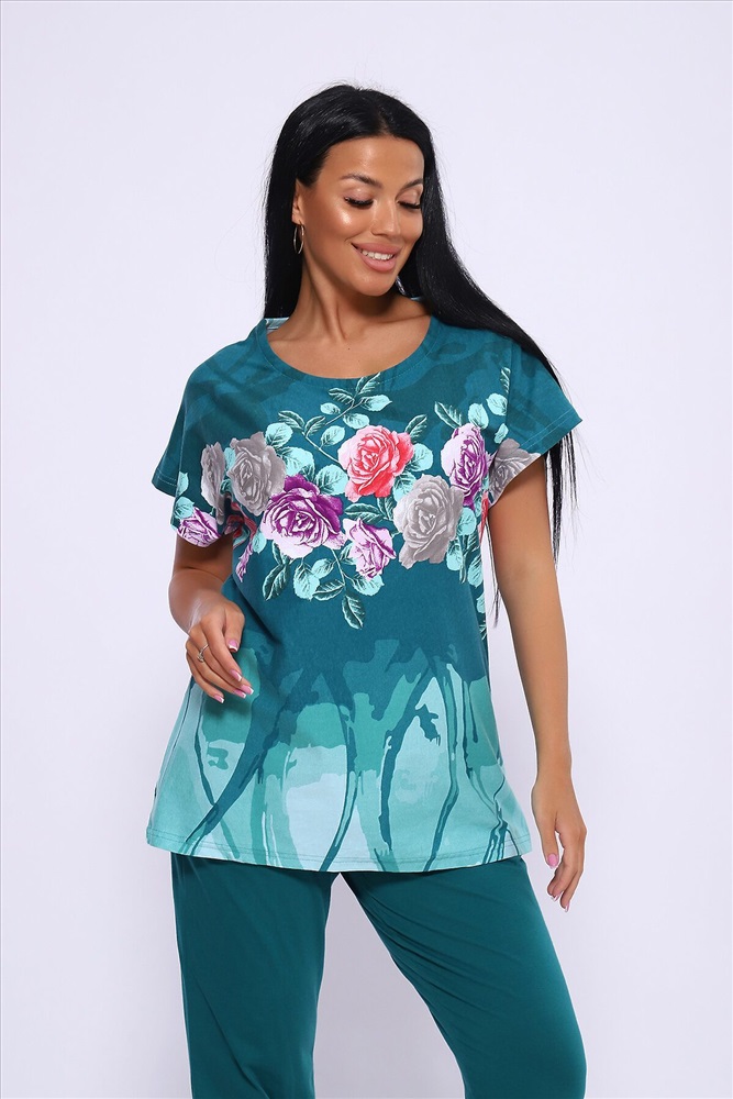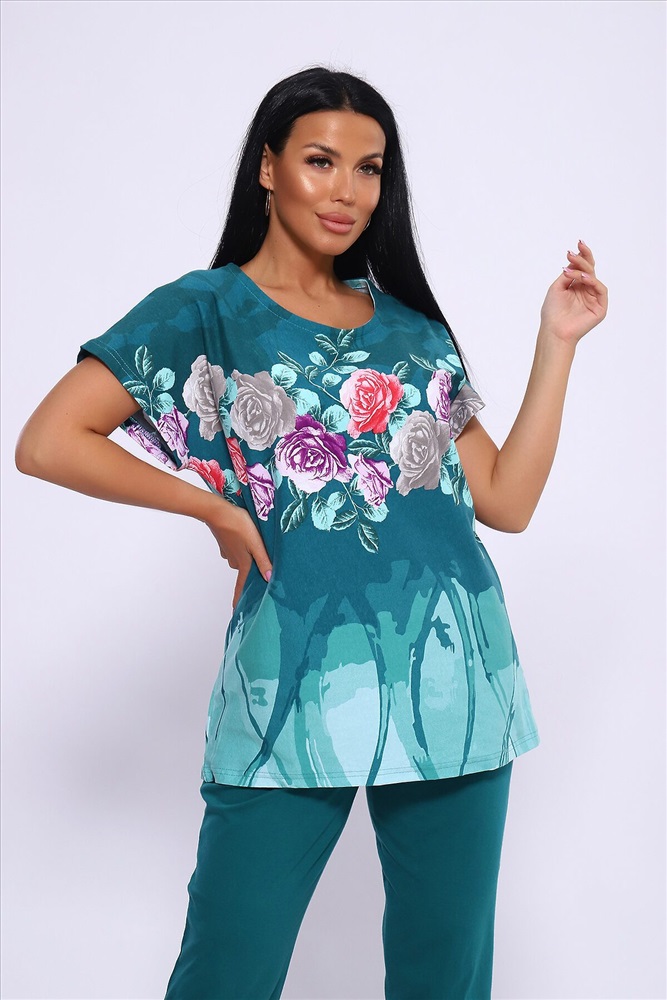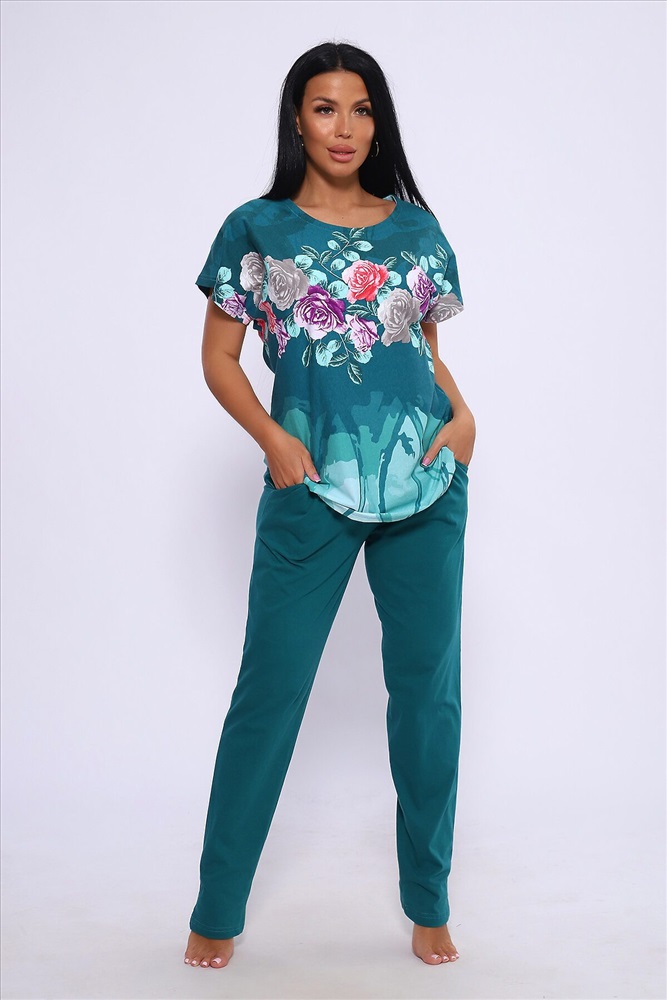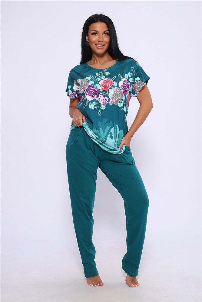 Страна производства: Россия Женский трикотажный костюм с брюками - идеальный выбор для тех, кто следит за модой и всегда хочет выглядеть сногсшибательно! Костюм прекрасно подходит для дома, прогулок и повседневной носки. Брюки свободные, с двумя боковыми карманами, на широком поясе с резинкой, кофта сшита из ткани с ярким цветочным рисунком. Легкая и приятная к телу ткань станет залогом приятного времяпровождения. Яркий и стильный костюм несомненно будет радовать хозяйку и поднимать настроение ей и окружающим!