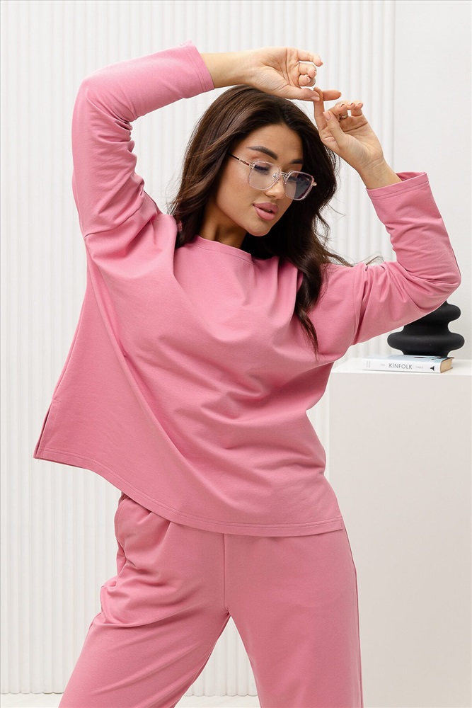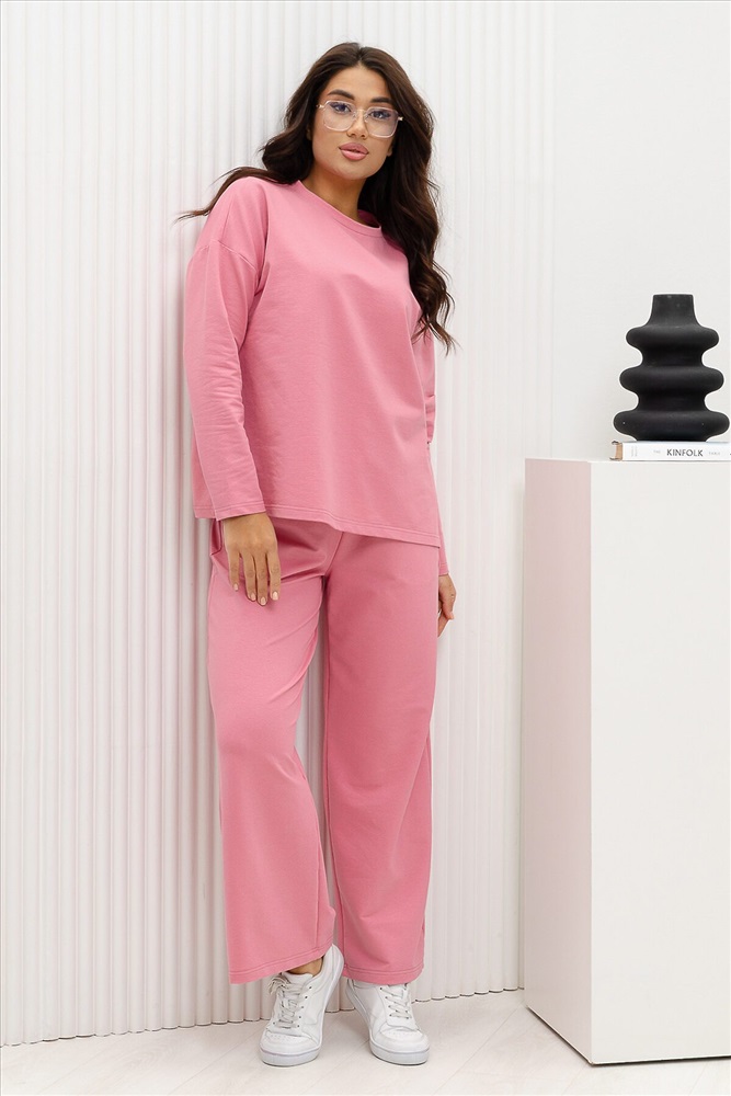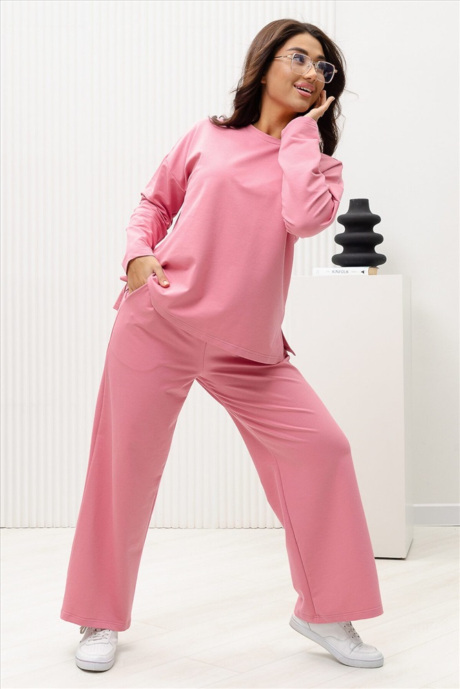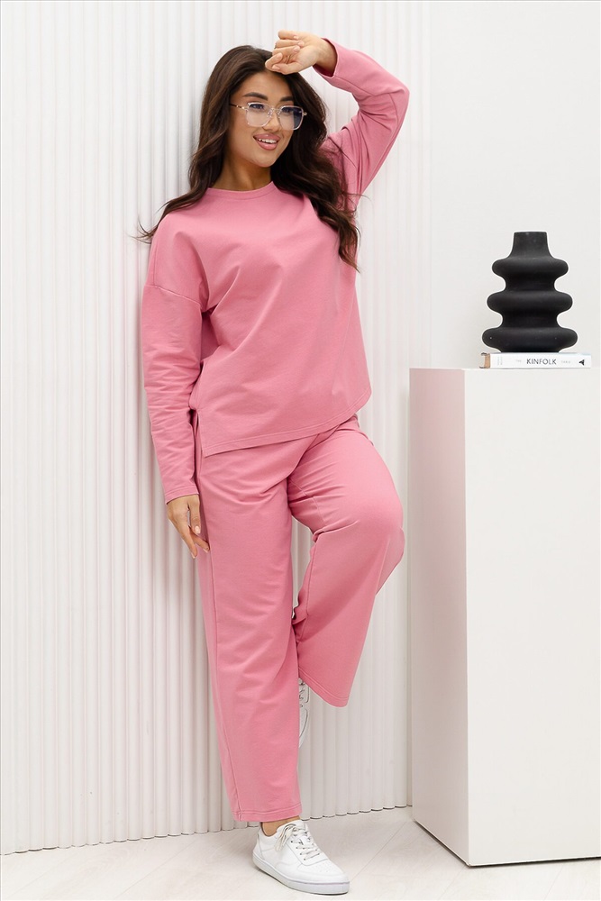ID товара: 939046 Состав: 65% Хлопок, 30% Полиэстер, 5% Лайкра Сезон: Весна/Лето Длина: Средняя Фасон: Свободный крой Рукав: длинные Крой брючин: Широкий Основная ткань: Хлопок Стиль: Повседневный Вид ткани: Футер с лайкрой 2-х нитка Страна бренда: Россия Страна производства: Россия Женский костюм из футера 2х нитки с лайкрой кофта + брюки, кофта свободная с длинными рукавами и разрезом по бокам. Брюки палаццо с высокой посадкой с карманами , Костюм прекрасно подойдёт для дома Комментарии к товару