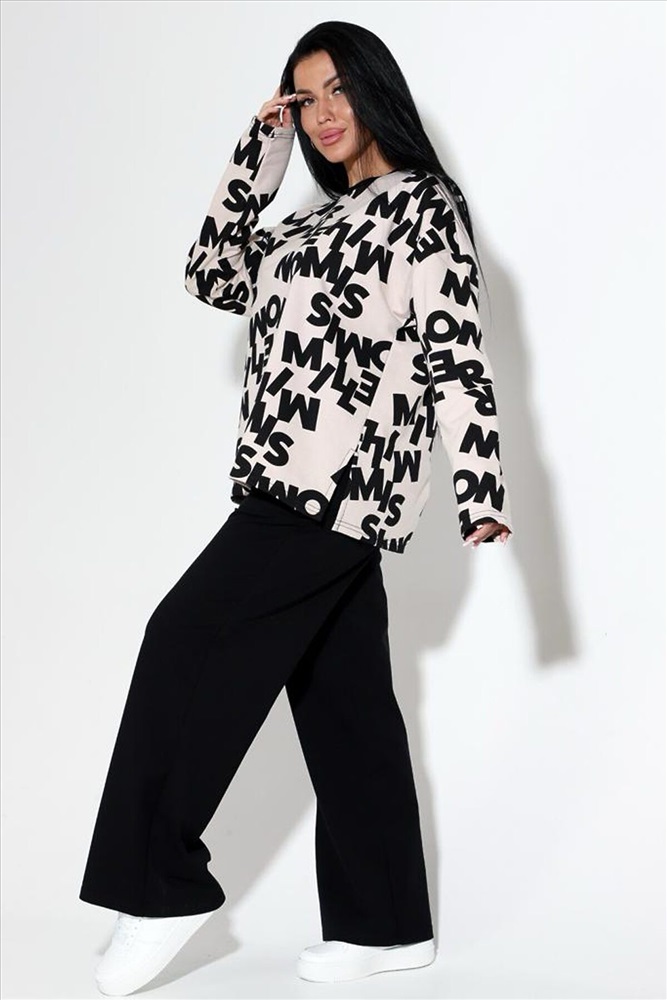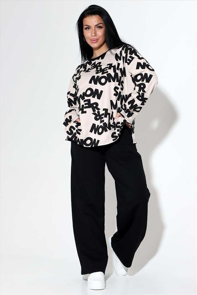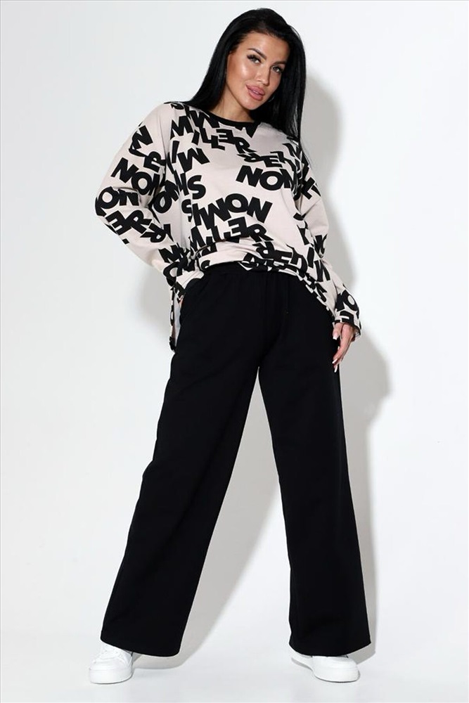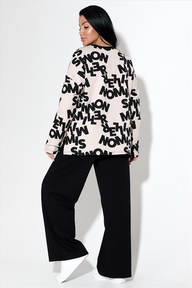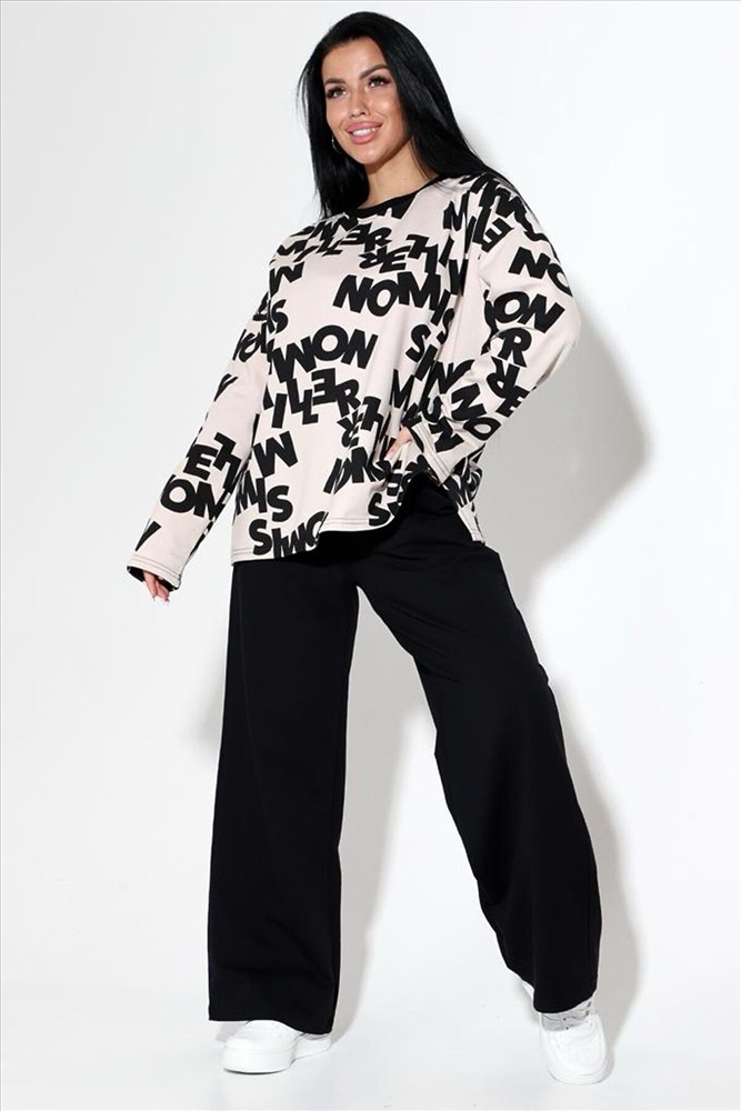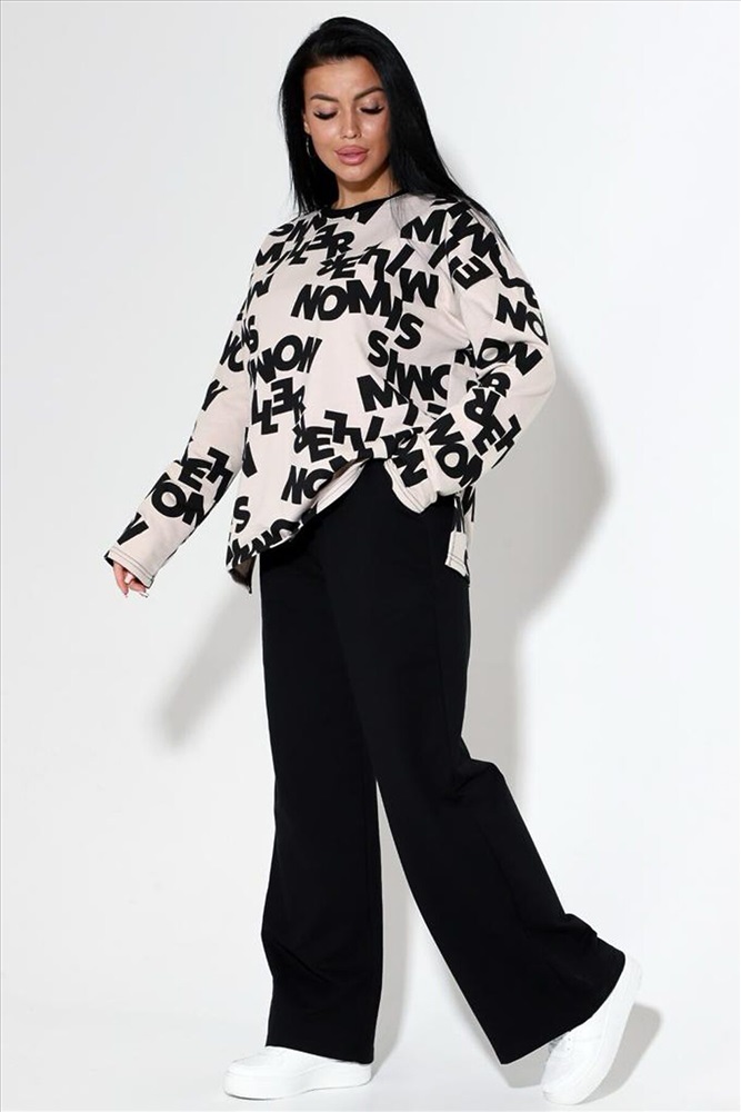 Страна производства: Россия Женский костюм из футера 2х нитки с лайкрой кофта + брюки, кофта свободная с длинными рукавами и разрезом по бокам. Брюки палаццо с высокой посадкой с карманами . Костюм прекрасно подойдёт для дома .