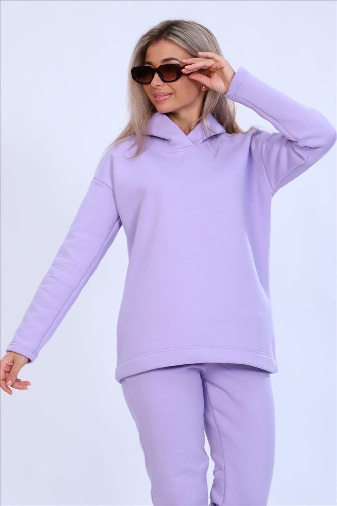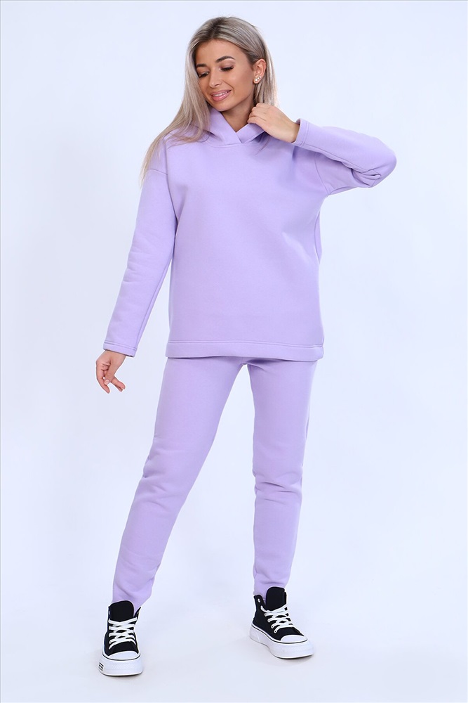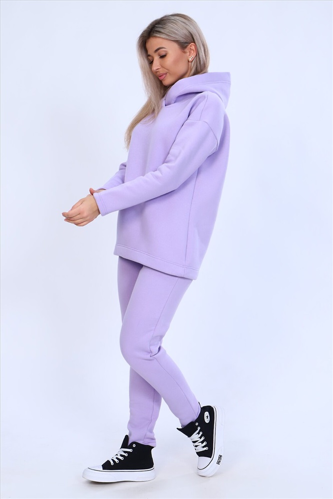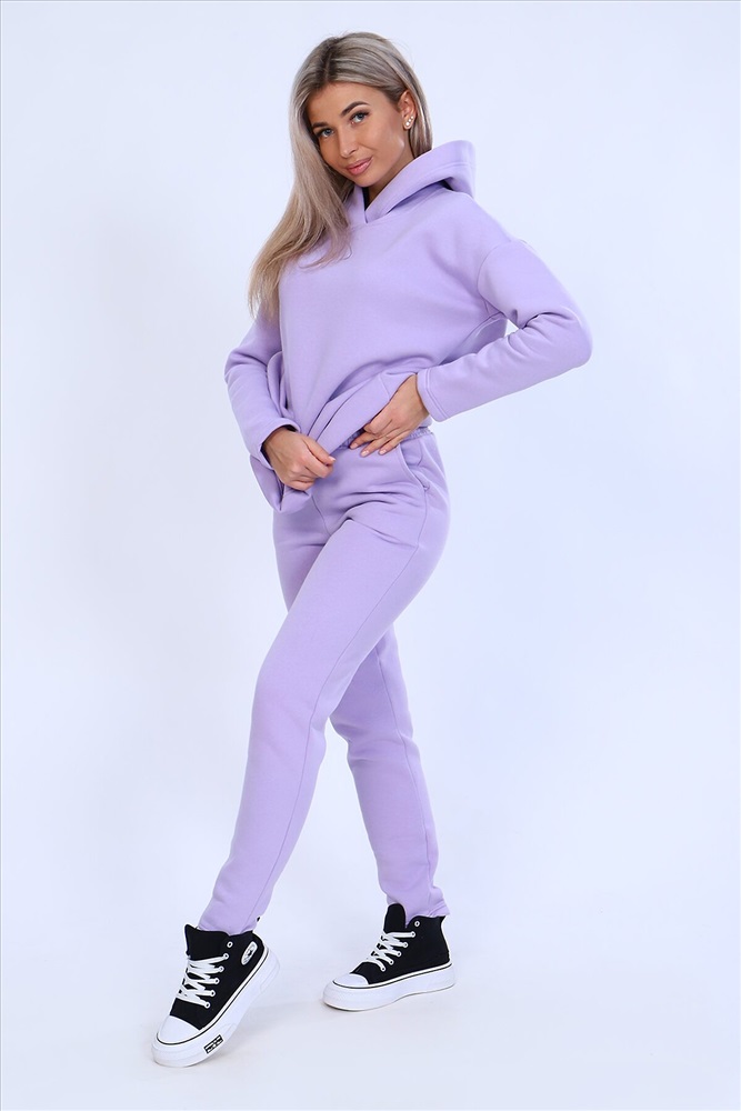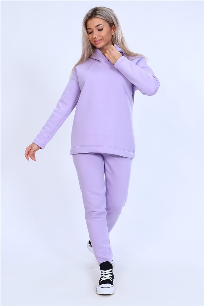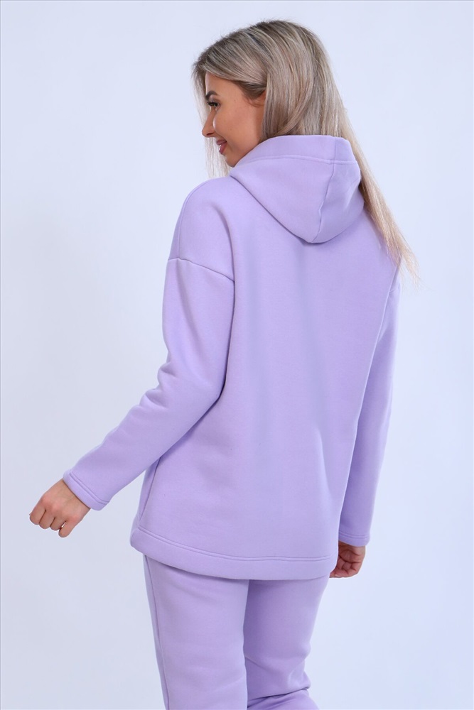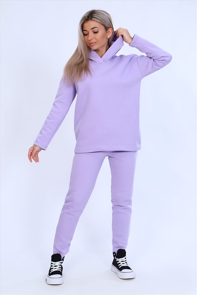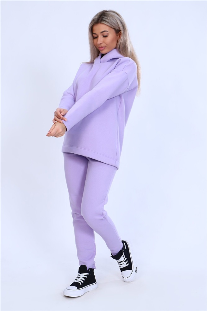 Страна производства: Россия Тёплый женский костюм, состоящий из толстовки и брюк. Комплект сшит из трехнитчатого футера высококачественного, тёплого и плотного трикотажа с начесом. Толстовка прямого силуэта с длинным рукавом и капюшоном в нахлест по центру горловины и фигурным низом - укороченной полочкой. Брюки прямого кроя с боковыми карманами в шве со скошенным входом на широкой (5 см) резинке, выполненной на поясной машине. Подклад кармана выполнен из тонкой хлопчатобумажной ткани-компаньона для избежания утолщения изделия. Низ толстовки, рукавов и брюк выполнен с широкой подгибкой, имитируя манжет. Костюм теплый, практичный, не стесняет движений, отлично подходит для занятий зимними видами спорта, для уличных прогулок в холодное время года, а также, как домашний костюм и для беременных. Отличный подарок самым прекрасным по любому поводу!