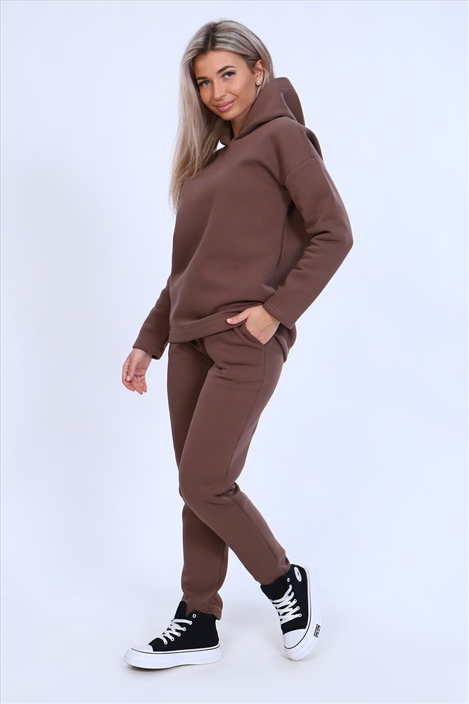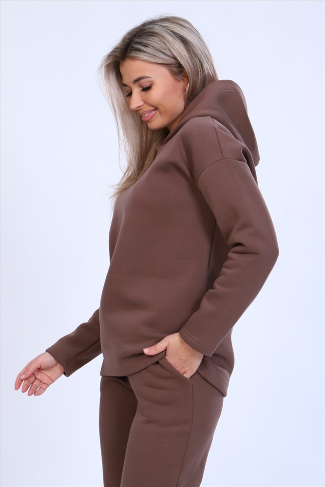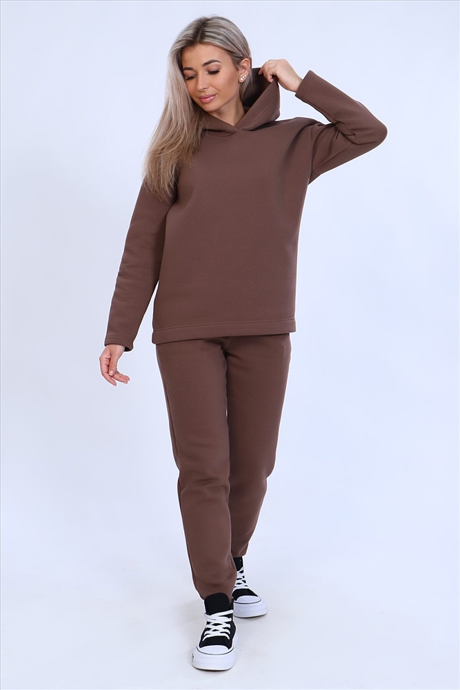 ID товара: 872581 Состав: 80% Хлопок, 20% Полиэстер Сезон: Демисезон Длина: Средняя Фасон: Свободный крой Рукав: длинные Крой брючин: Зауженный Основная ткань: Футер 3-х нитка с начесом Стиль: Повседневный Страна бренда: Россия Страна производства: Россия Тёплый женский костюм, состоящий из толстовки и брюк. Комплект сшит из трехнитчатого футера высококачественного, тёплого и плотного трикотажа с начесом. Толстовка прямого силуэта с длинным рукавом и капюшоном в нахлест по центру горловины и фигурным низом - укороченной полочкой. Брюки прямого кроя с боковыми карманами в шве со скошенным входом на широкой (5 см) резинке, выполненной на поясной машине. Подклад кармана выполнен из тонкой хлопчатобумажной ткани-компаньона для избежания утолщения изделия. Низ толстовки, рукавов и брюк выполнен с широкой подгибкой, имитируя манжет. Костюм теплый, практичный, не стесняет движений, отлично подходит для занятий зимними видами спорта, для уличных прогулок в холодное время года, а также, как домашний костюм и для беременных. Отличный подарок самым прекрасным по любому поводу! Комментарии к товару