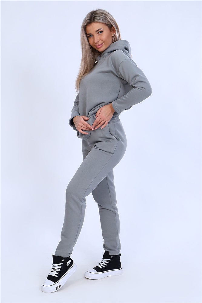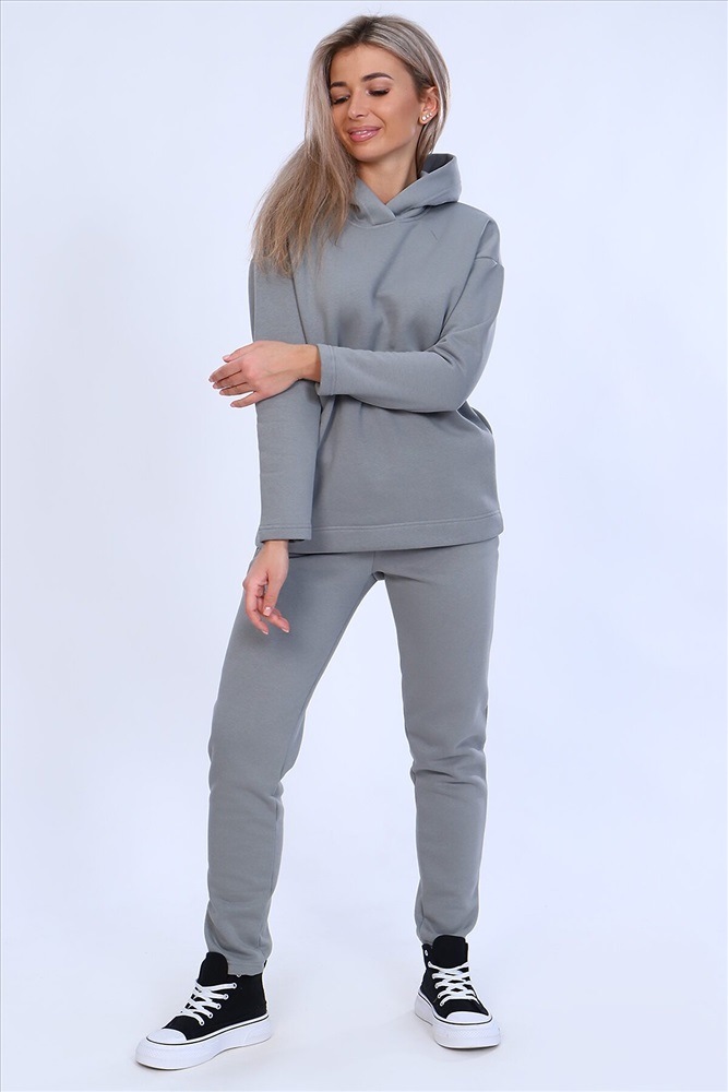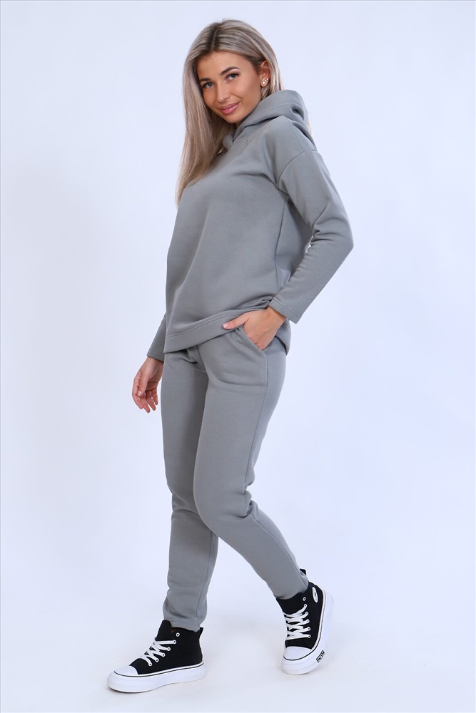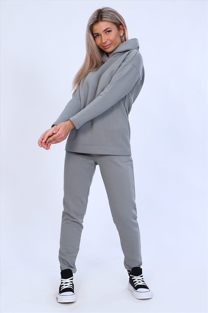 Страна производства: Россия Тёплый женский костюм, состоящий из толстовки и брюк. Комплект сшит из трехнитчатого футера высококачественного, тёплого и плотного трикотажа с начесом. Толстовка прямого силуэта с длинным рукавом и капюшоном в нахлест по центру горловины и фигурным низом - укороченной полочкой. Брюки прямого кроя с боковыми карманами в шве со скошенным входом на широкой (5 см) резинке, выполненной на поясной машине. Подклад кармана выполнен из тонкой хлопчатобумажной ткани-компаньона для избежания утолщения изделия. Низ толстовки, рукавов и брюк выполнен с широкой подгибкой, имитируя манжет. Костюм теплый, практичный, не стесняет движений, отлично подходит для занятий зимними видами спорта, для уличных прогулок в холодное время года, а также, как домашний костюм и для беременных. Отличный подарок самым прекрасным по любому поводу!