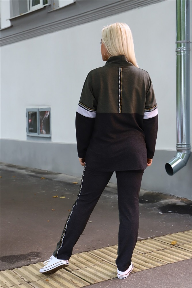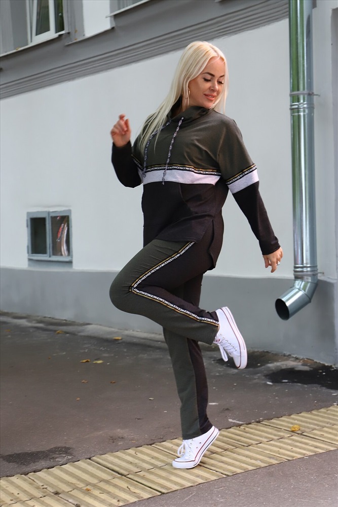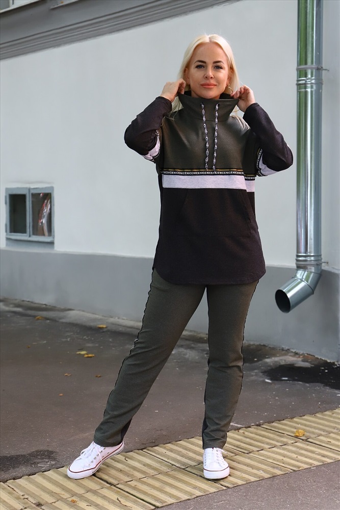 ID товара: 883162 Состав: 65% Хлопок, 30% Полиэстер, 5% Лайкра Сезон: Весна/Лето Фасон: Прямой Рукав: Длинный Крой брючин: Прямой Основная ткань: Футер 2-х нитка Страна бренда: Россия Страна производства: Россия Костюм женский туника и брюки. Туника прямого силуэта, брюки облегающие. Воротник-стойка хомут со шнурками из тесьмы. Карман - кенгуру. Верхняя и нижняя часть туники из разных тканей, посередине полочки и рукавов белая отделочная полоса с декоративной тесьмой. Брюки с карманами и лампасами из декоративной тесьмы. Комментарии к товару