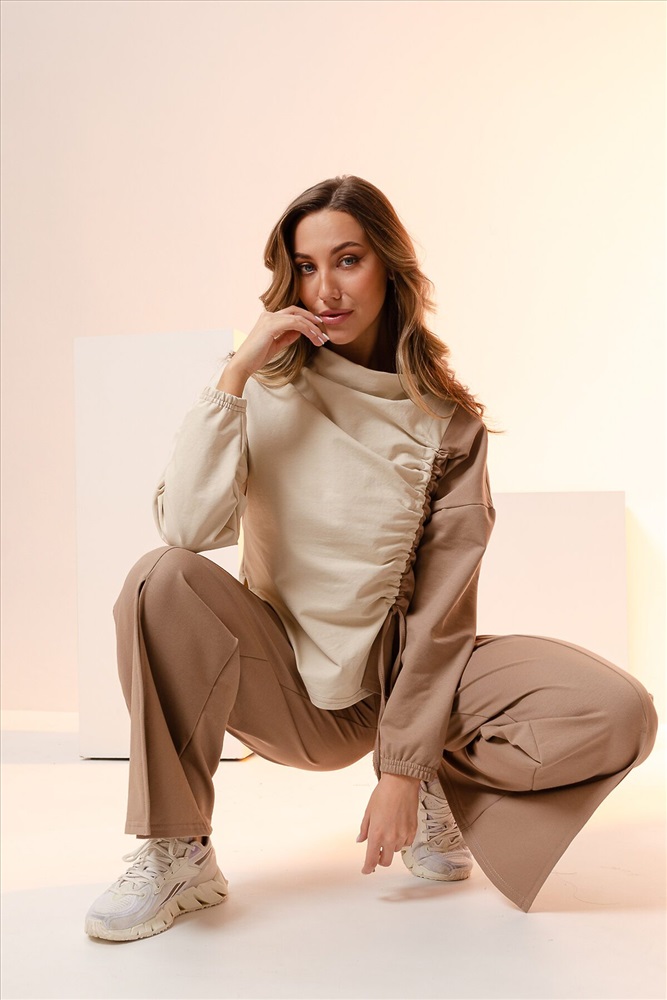 ID товара: 956665 Состав: Хлопок 72%, Полиэстер 20%, Эластан 8% Сезон: Демисезон Длина: Средняя Фасон: Прямой Рукав: длинные Крой брючин: Широкий Декоративные элементы: Разрезы Основная ткань: Хлопок Стиль: Повседневный Вид ткани: Футер с лайкрой 2-х нитка Страна бренда: Россия Страна производства: Россия Костюм женский из хлопкового трикотажа - тонкий футер без утеплителя. Подойдет для повседневной носки и для вечерних выходов. Очень выгодный фасон и комбинация тканей, корректируют фигуру и вытягивают силуэт, скрывают недостатки и подчеркивают достоинства фигуры. Туника удлиненная по спинке, рукав полной длины, воротник-лодочка-стойка, крайне оригинальная ассиметричная драпировка с возможностью регулирования степени складок или полного их отсутствия. Брюки свободные широкие на креативном двойном поясе. Палаццо брюки добавляют образу элегантность и дополнительные вертикали, за счет которых силуэт вытягивается и становится стройнее. Брюки офисные или вечерние на резинке это комфорт и удобство в течении всего дня. Брюки на весну на прохладное лето и осень подойдут как для худеньких, так и для полных женщин. Комментарии к товару