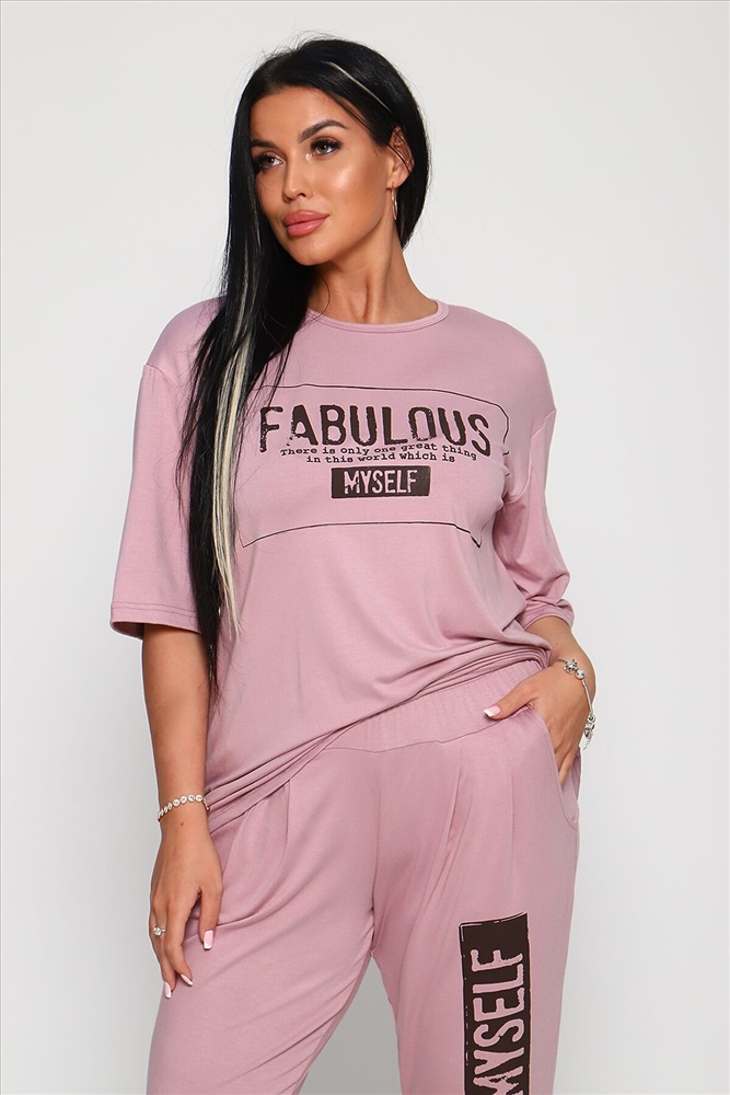 ID товара: 892540 Состав: Вискоза 95; Лайкра 5% Сезон: Весна/Лето Длина: Средняя Фасон: Свободный крой Рукав: короткие Крой брючин: Зауженный Тип карманов: Кенгуру Основная ткань: Вискоза Стиль: Спортивный Вид ткани: Вискоза Страна бренда: Россия Страна производства: Россия Костюм из вискозы, состоит из футболки и брюк. Футболка свободная, рукав до локтя, горловина обработана под окантовку по переду принт. Брюки по переду со складками, с карманами с принтом на одной брючине, длина до щиколотки. На модели 48-50 размер. Комментарии к товару