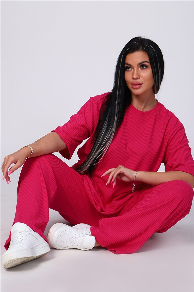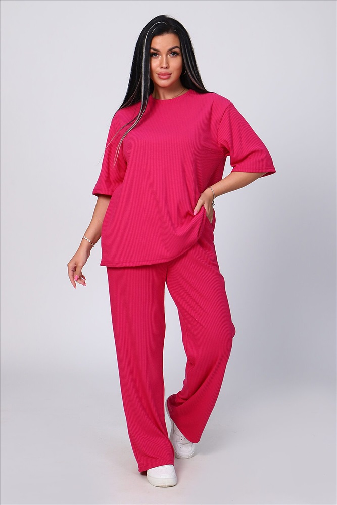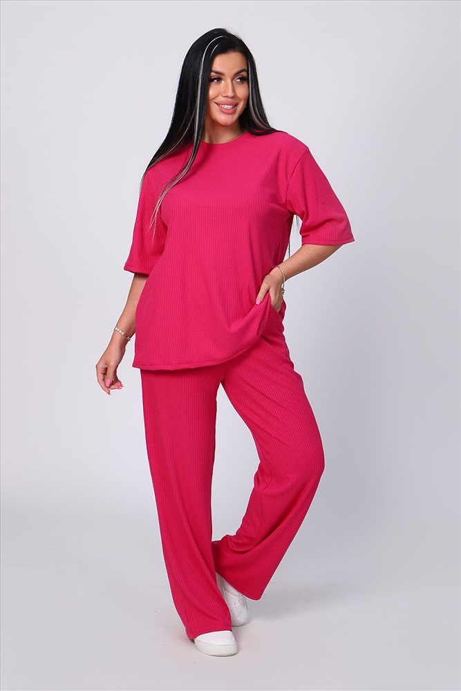 ID товара: 890477 Состав: 65% Полиэстер, 30% Вискоза, 5% Лайкра Сезон: Весна/Лето Длина: Средняя Фасон: Свободный крой Рукав: короткие Крой брючин: Прямой Тип карманов: С отрезным бочком Основная ткань: Полиэстер Стиль: Повседневный Вид ткани: Лапша Страна бренда: Россия Страна производства: Россия Костюм женский с широкими брюками. Кофта оверсайз удлинённая, рукав до локтя, горловина обработана обтачкой. Брюки длинные, широкие с карманами. Большой размерный ряд. На модели 48 размер. Комментарии к товару