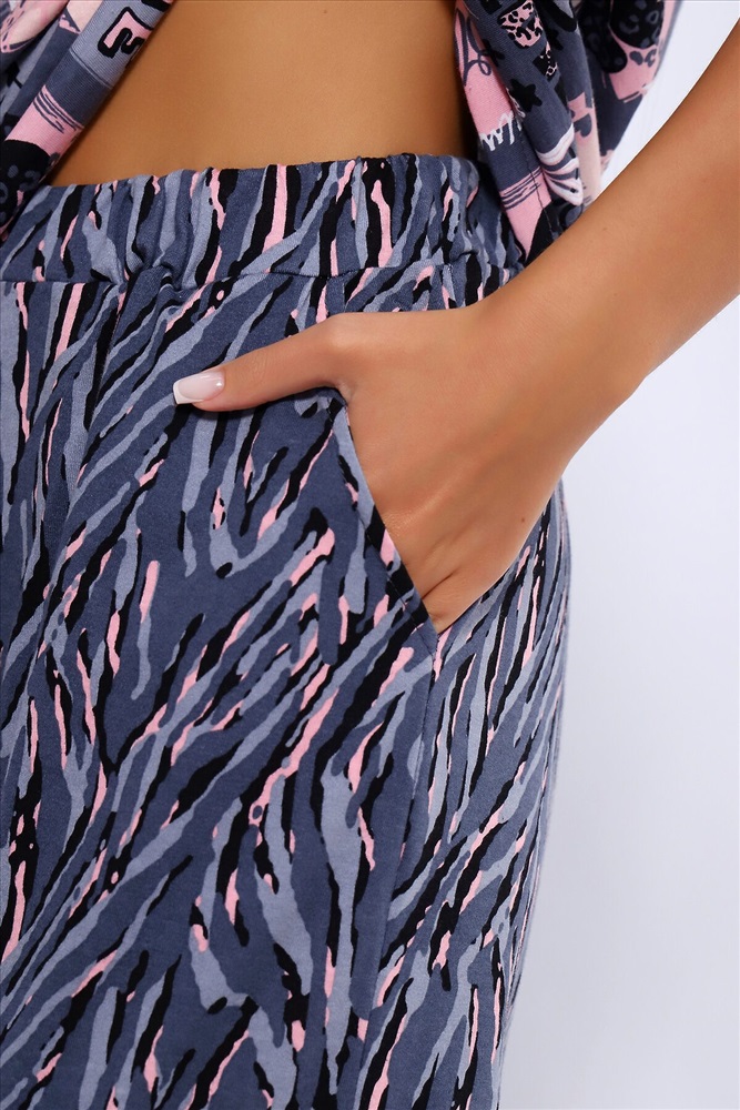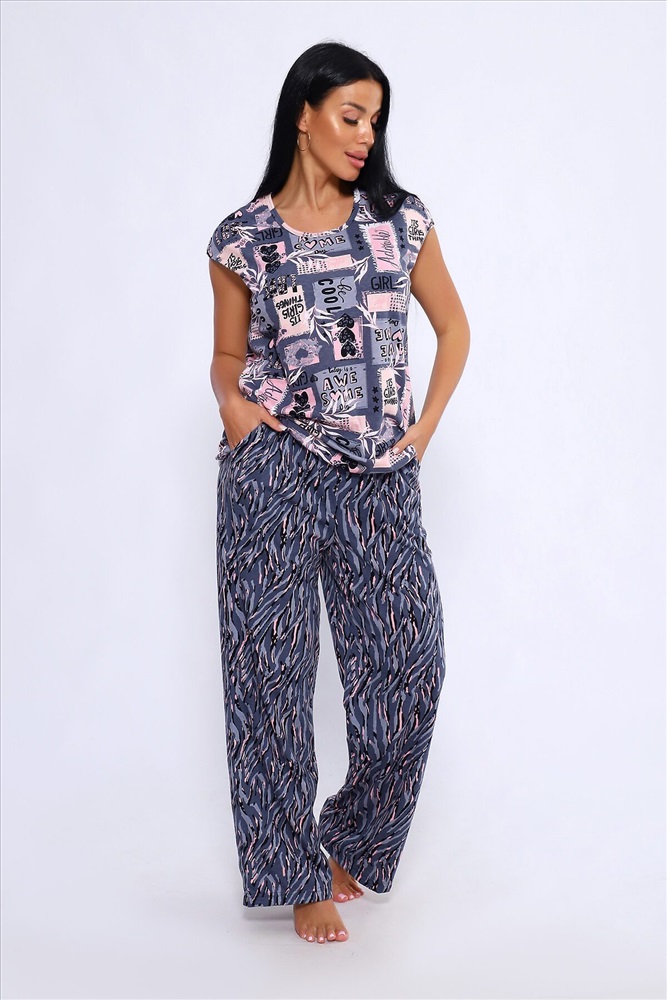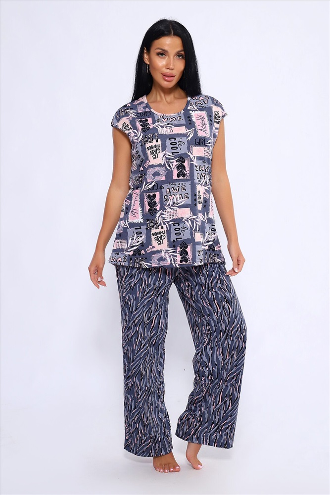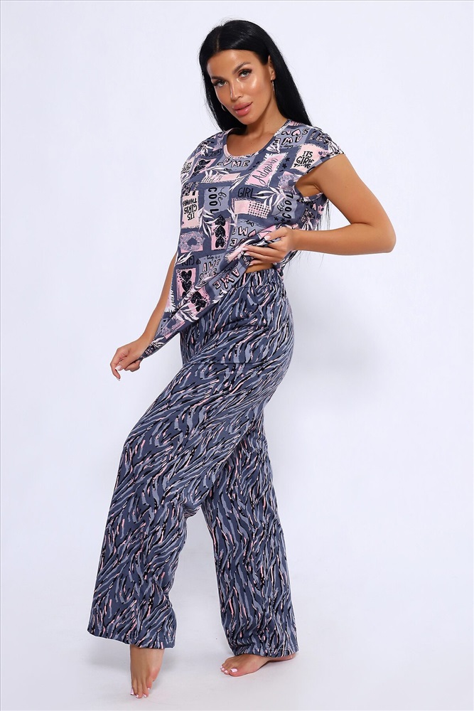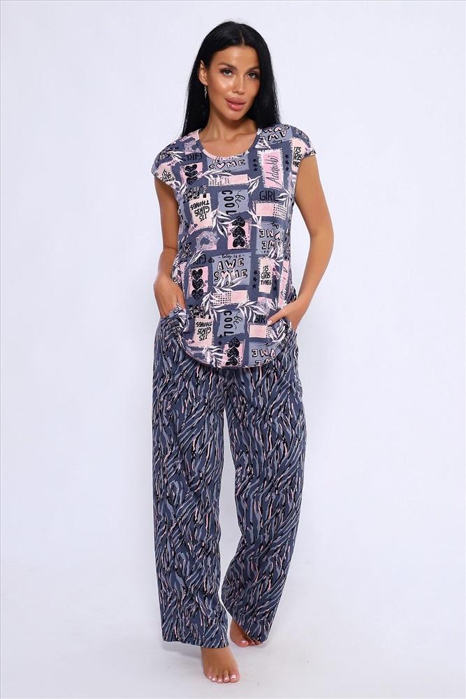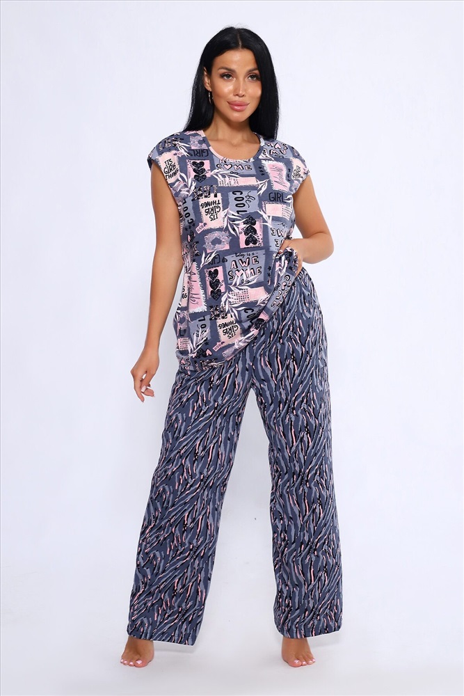 ID товара: 1023997 Состав: Хлопок 100% Сезон: Демисезон Длина: Полная Фасон: Свободный Рукав: короткие Крой брючин: Широкий Рисунок: Абстракция Тип карманов: В шве Декоративные элементы: Принт Основная ткань: Хлопок Вид ткани: Кулирка Страна бренда: Россия Страна производства: Россия Женский костюм из 100% хлопка, длинные широкие брюки на эластичной резинке по талии шириной 3 см., с карманами в боковых швах и футболкой со спущенным плечом. Брюки в двух расцветках. Интересное и актуальное цветовое сочетание серых и розовых оттенков отличный вариант. Брюки и футболку можно сочетать и с другими предметами вашего гардероба. Ткань не просвечивает и имеет эластичность, обеспечит комфортное времяпрепровождение вашего досуга как дома так и на отдыхе. На фото модель представлена в 48 размере. Комментарии к товару