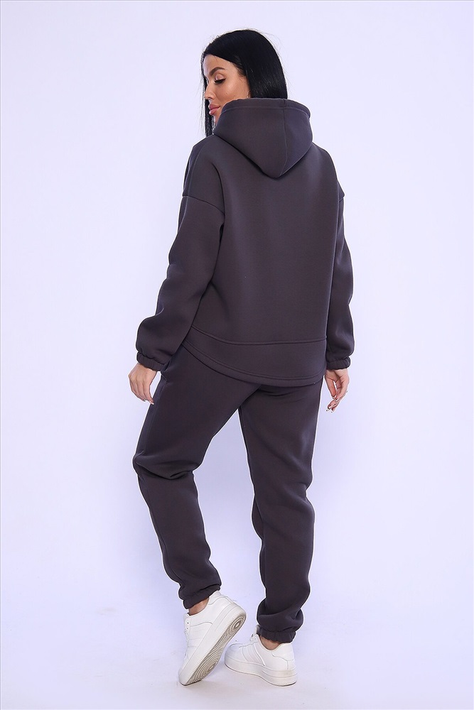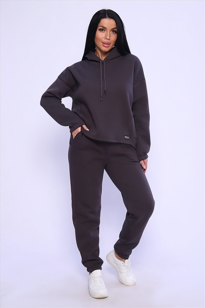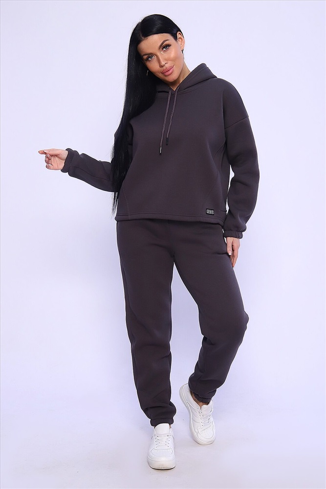 ID товара: 961368 Состав: 70% Хлопок; 30% Полиэстер Сезон: Осень/Зима Длина: Полная Фасон: Свободный крой Рукав: длинные Крой брючин: Зауженный Тип карманов: С отрезным бочком Декоративные элементы: С капюшоном Основная ткань: Хлопок Стиль: Спортивный Вид ткани: Футер 3-х нитка с начесом Страна бренда: Россия Страна производства: Россия Теплый костюм выполнен из футера 3-х нитки с начесом с содержанием хлопка премиум качества. Костюм состоит из объёмной толстовки в стиле оверсайз и джогеров. Низ брюк и рукавов на толстовке обработан резинкой. Пояс брюк на резинке, для удобства по бокам расположены прорезные карманы. Перед использованием желательно постирать костюм при 30 градусах, тогда излишний ворс примнется. Комментарии к товару