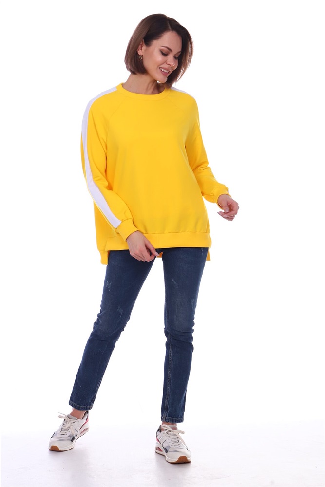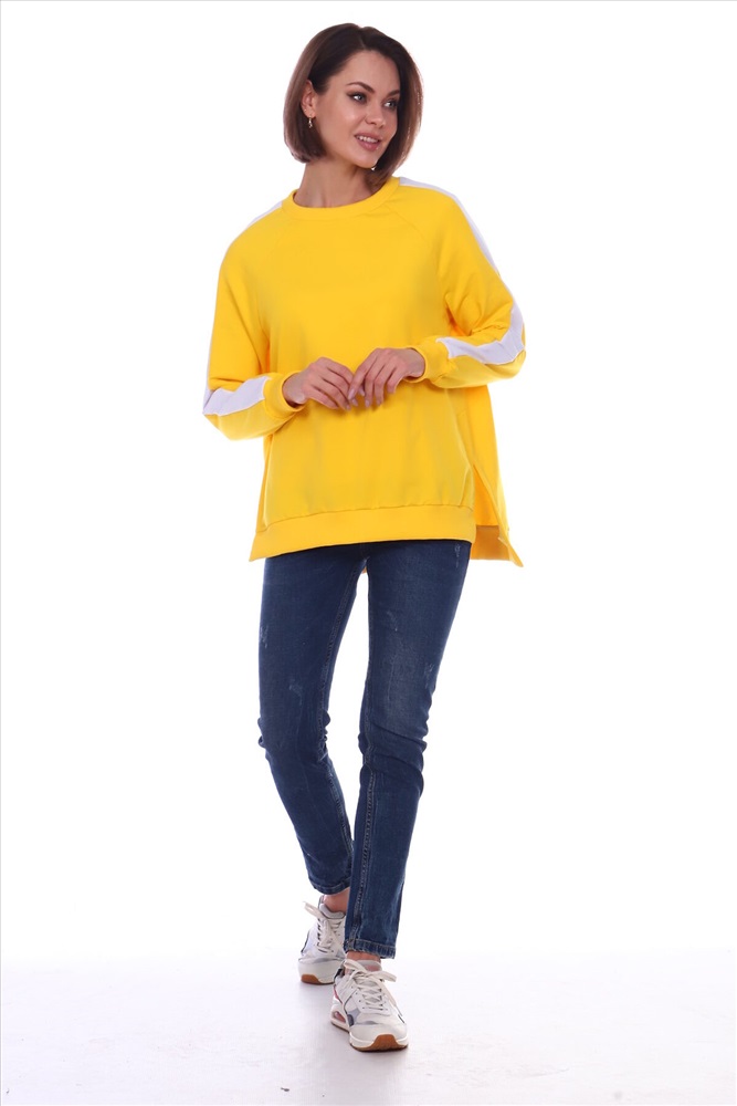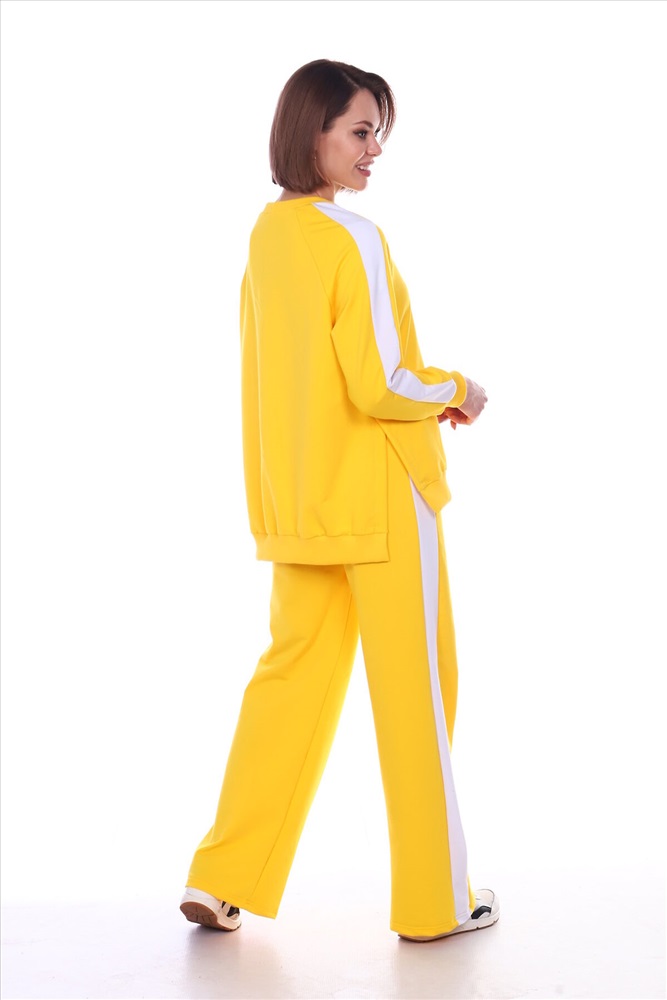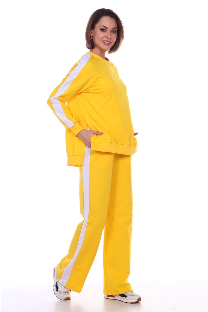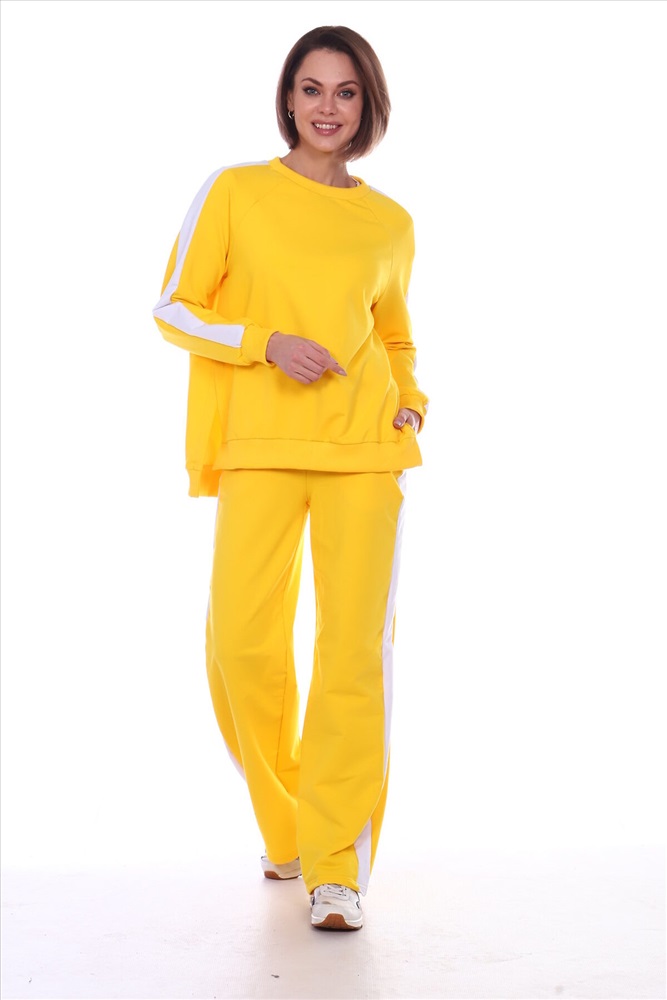 Универсальный костюм женский для повседневной жизни, выполнен из футера 2х нитки с лайкрой (без начеса). Костюм прогулочный в стиле OVERSIZE - просто идеальное решение для пополнения вашего гардероба. Комплект состоит из широких брюк и уютного свитшота. Свитшот свободного объема, прямого силуэта с рукавом реглан. По центру рукава по всей длине проходит контрастная белая вставка (лампас). Низ рукава обработан манжетой из хлопкового кашкорсе в рубчик. Разрезы в шлице по бокам делают свитшот стильным и элегантным. Более длинная спинка поможет скрыть недостатки фигуры. Брюки прямого силуэта имеют притачной пояс на резинке и боковые карманы с отрезным бочком. Тканевые лампасы очень актуальны в этом сезоне. В них кроется особая прелесть, они позволяют привычным вещам играть по-новому, более интересно. Вертикальные полоски отлично удлиняют силуэт. Такой наряд гарантирует вам максимальный комфорт и уют. Он позволит вам подчеркнуть свой стиль, создавая действительно запоминающиеся образы. Модный костюм с брюками и кофтой прекрасно сочетается с кроссовками и кедами, а брюки можно носить с туфлями на каблуках дополнив их элегантным топом. В костюме с лампасами любая девушка сразу же превращается в грациозную и уверенную в себе леди, которая знает толк в модной одежде и имеет врожденное чувство стиля. Обращаем ваше внимание модель оверсайз, предполагает свободную посадку.