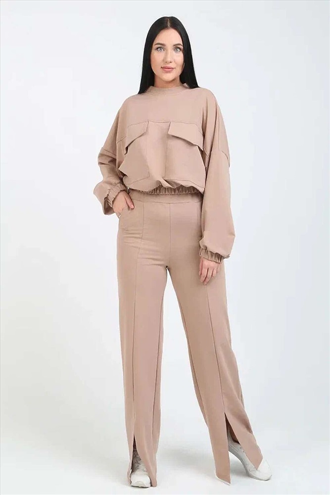ID товара: 887588 Состав: 67% Хлопок, 30% Полиэстер, 3% Лайкра. Сезон: Весна/Лето Длина: Полная Фасон: Свободный крой Рукав: длинные Крой брючин: Широкий Тип карманов: Накладные Основная ткань: Хлопок | Футер 2-х нитка Стиль: повседневный, уличный Страна бренда: Россия Страна производства: Россия А Вы уже купили себе брюки-трубы? Если нет, то стильный женский костюм со свитшотом и широкими брюками поможет Вам быть в тренде этого сезона! Костюм двойка выполнен из тонкой плотной ткани премиум класса футер 2х нитка без начеса состав: 67% х/б, 30% п/э, 3 % лайкра. За счет полиэстера и лайкры в составе ткань не теряет форму после многочисленных стирок и не скатывается. Костюм спортивный женский цвета Very Peri состоит из мягкой кофты и прямых брюк. Свитшот прямого силуэта, малого оверсайза со спущенным рукавом имеет горизонтальный шов в который спрятаны клапаны больших накладных карманов, низ и рукава джемпера на свободной широкой резинке, горловина обработана обтачкой из кашкорсе в рубчик в тон основному изделию. Особый шик свитшоту придают ультрамодные в сезоне 2023 года большие карманы с клапаном. Брюки трубы выпонены на широкой резинке с отстроченными стрелками и разрезами спереди. Спереди на брюках два кармана с отрезным бочком. Наши брюки палаццо подходят для любого типа фигуры, скрывают ее недостатки и подчеркивают достоинства. Костюм прекрасно подойдет для вечерних и повседневных образов, для прогулок и занятий спортом, в качестве костюма для дома, если позволяет дресс-код можно одеть на работу. Такой фасон может быть женственным и легким, стоит добавить к брюкам-трубам легкую воздушную кофточку. Брюки-палаццо с широкими штанинами из трикотажной ткани очень удобны в качестве повседневной одежды, не сковывают движения. Свитшот и брюки палаццо с разрезами отлично смотрятся в тандеме. Трикотажный костюм представлен в ультрамодном цвете very peri. Женские спортивные костюмы с брюками палаццо - выбор уверенных в себе девушек Комментарии к товару