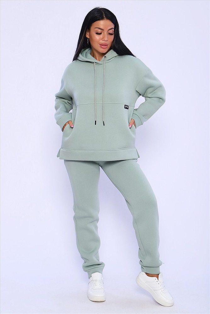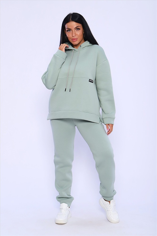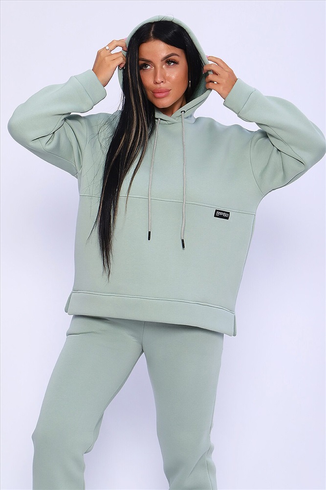 Страна производства: Россия Костюм женский в спортивном стиле из футера с начёсом высокого качества пенье. Худи ОВЕРСАЙЗ с капюшоном на тонком подкладе из кулирки и декоративным шнуром, спущенная пройма, длинный рукав на манжете, в боковых шва удобные карманы. Низ толстовки обработан широкой планкой с боковыми разрезами. Брюки с карманами в боковых швах , удобная посадка, низ на широком манжете. Мягкий, тёплый костюм отличный вариант для осенних прогулок, активного отдыха, занятий спортом. Длина рукава в таблице измерений указана от начала горловины.