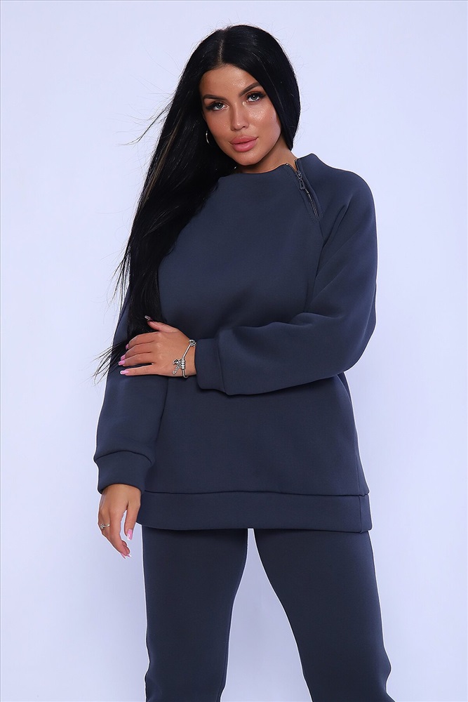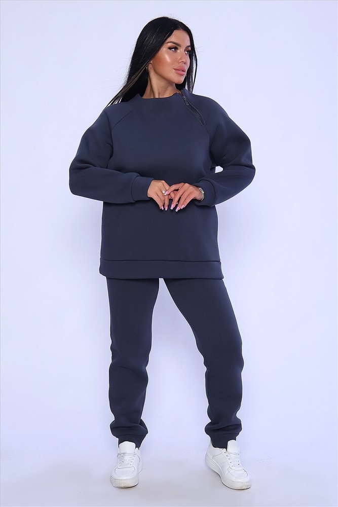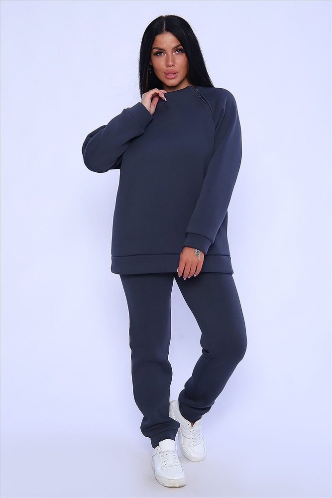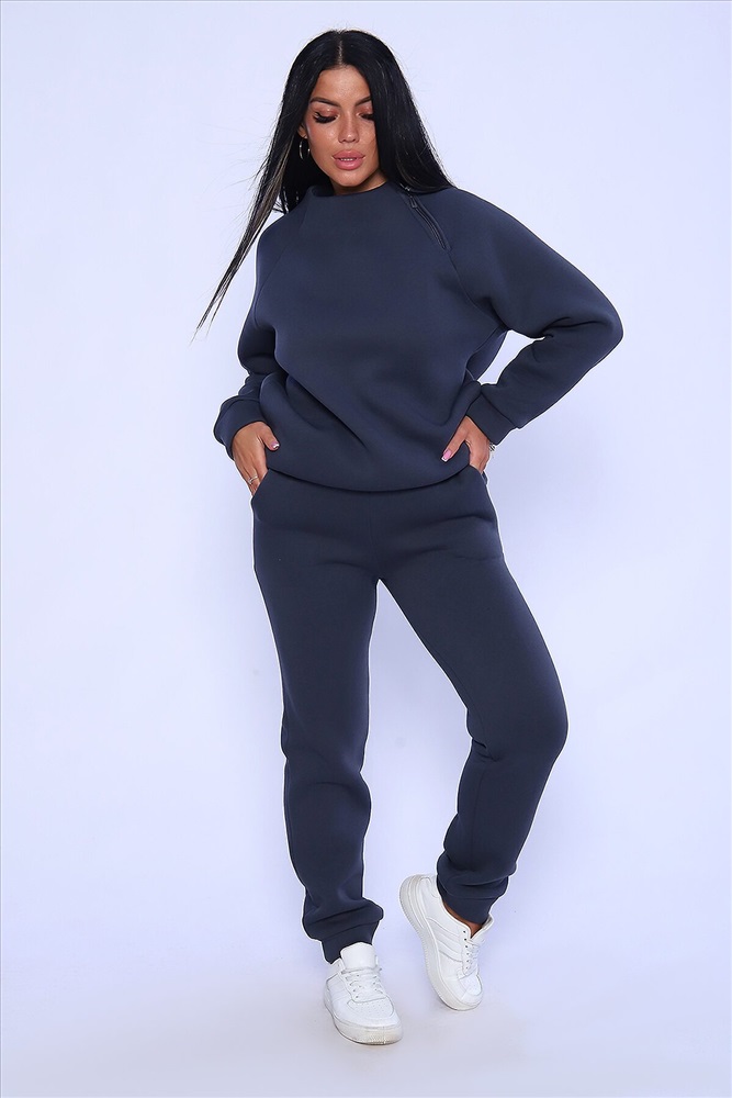 Костюм женский из футера 3-х нитка с начёсом высокого качества пенье. Свитшот свободный, небольшая цельнокроеная стойка, реглан с декоративной функциональной молнией, низ толстовки и рукава на манжете, в боковых швах удобные карманы. Брюки-джоггеры зауженные на манжете, с боковыми карманами . Брючный модный костюм в стиле оверсайз. Невероятно мягкий и теплый футер с начесом с внутренней стороны, что делает его еще более уютным и комфортным. Тёплый, эффектный костюм - воплощение стиля и практичности. Не упустите возможность дополнить свой гардероб этим уникальным комплектом! Для силуэта оверсайз выбирайте свой размер; для более приталенного варианта-на размер меньше. Длина рукава в таблице измерений указана от начала горловины.