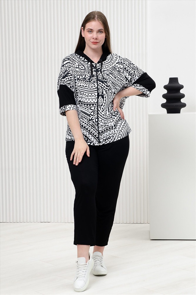 Страна производства: Россия Костюм состоит из толстовки и брюк. Толстовка прямая, свободная, с капюшоном, на молнии. Рукав короткий, на манжете. На полочке расположены фигурные накладные карманы. Брюки на поясе, с боковыми карманами. В верхней части передних половинок по шву притачивания пояса расположены складки.