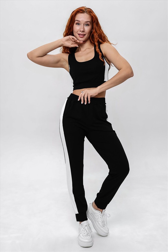 Производитель: НАТАЛИ ID товара: 1000343 Состав: Вискоза 92%, Лайкра 8% Сезон: Весна/Лето Фасон: Облегающий Рукав: Без рукавов Крой брючин: Зауженный Декоративные элементы: Лампасы Вид ткани: Вискоза пенье Страна бренда: Россия Страна производства: Россия