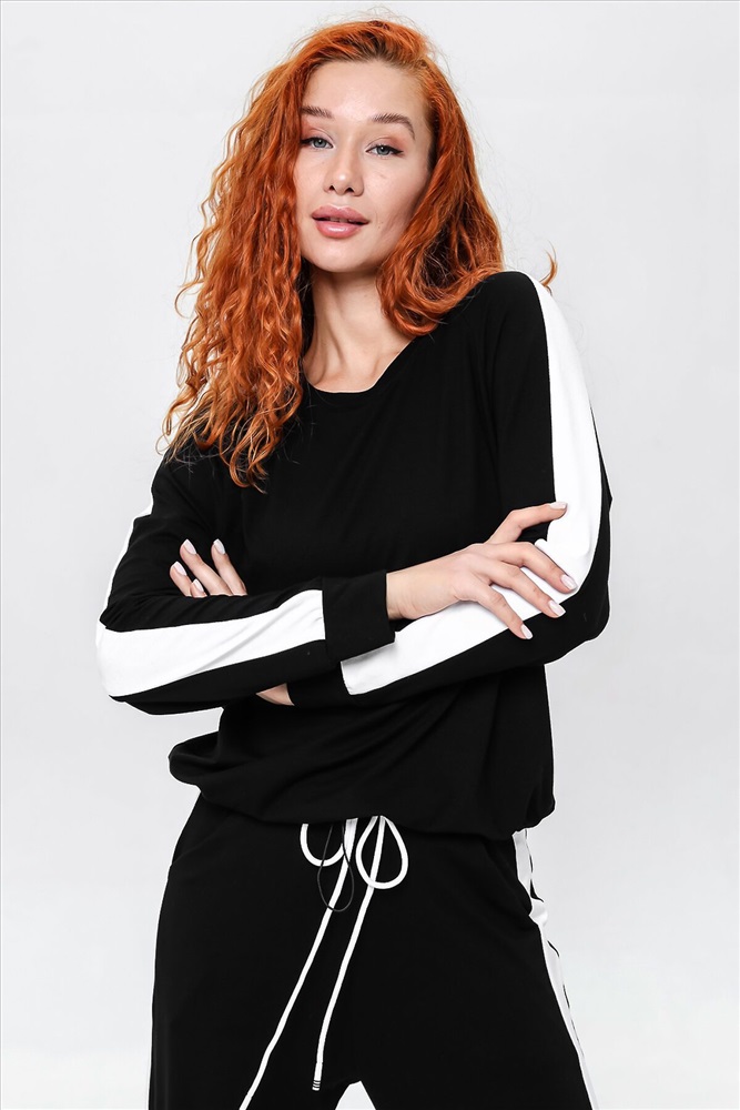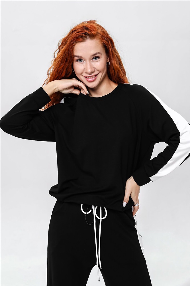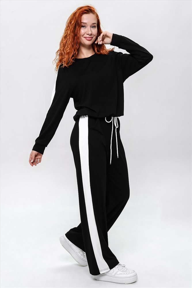 Страна производства: Россия Костюм состоит из туники и брюк. Туника прямая, с округлой горловиной, с резинкой по низу. Рукав реглан, длинный, с лампасом из отделочного полотна вдоль рукава, на манжете. Горловина обработана обтачкой из основного полотна. Брюки прямые, на поясе, с боковыми карманами, с лампасами из отделочного полотна вдоль боковых швов.