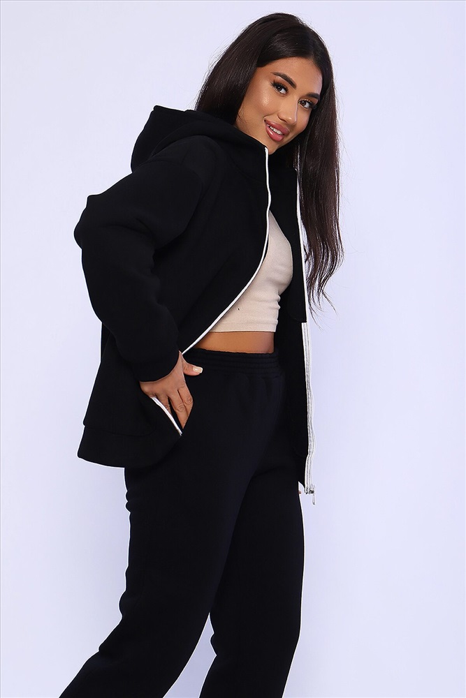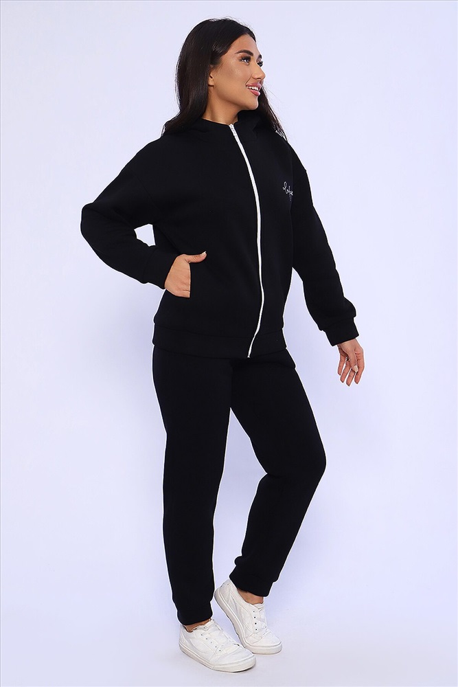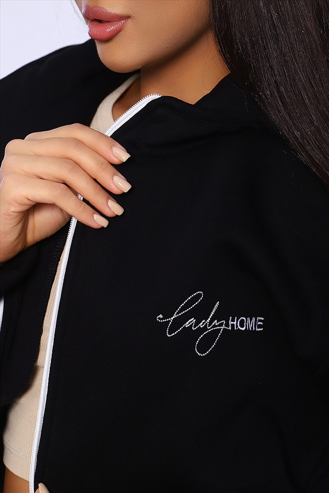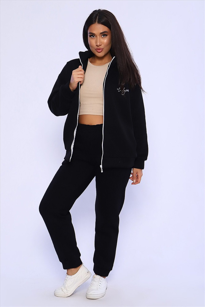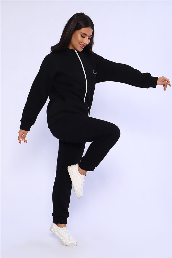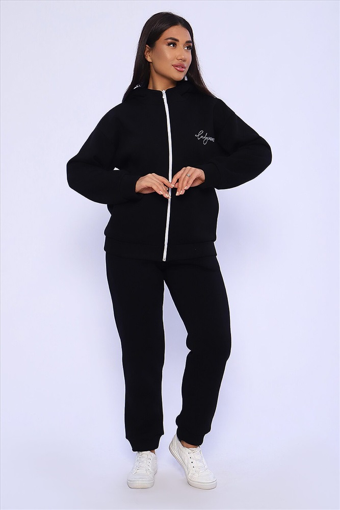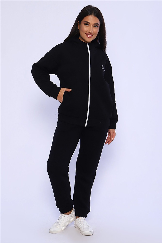 Женский костюм из футера 3-х нитки с начесом. Костюм состоит из толстовки и брюк. Толстовка свободная на молнии с капюшоном, на полочке оригинальная вышивка Lady HOME, по боковому шву в шве карман. Толстовка со спущенным рукавом на манжете. Брюки свободные. По боковому шву карман в шве, низ брюк на манжете. Пояс обработан на поясной машине, что делает брюки практичными при носке резинка не скручивается. Костюм теплый, удобный, комфортный. Идеальное решение для повседневной носки в прохладную погоду!