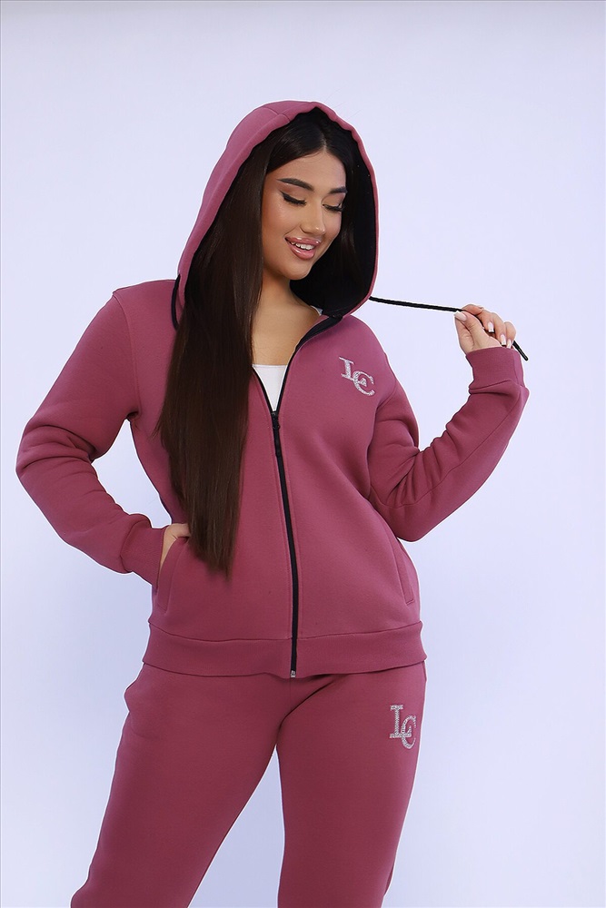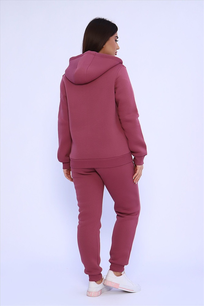 Женский однотонный спортивный костюм из футера с начесом, который будет актуален в зимнее время. Костюм состоит из толстовки на молнии и джоггеров. Толстовка с глубокими прорезными карманами и капюшоном. Джоггеры на резинке, которые дополнены шнуром для дополнительного регулирования объема талии. Модель сшита из высококачественного материала с начесом высшего качества. Ткань невероятно приятная к телу. Наши изделия износостойкие, можно стирать множество раз и они не потеряют свой цвет и первоначальный внешний вид.