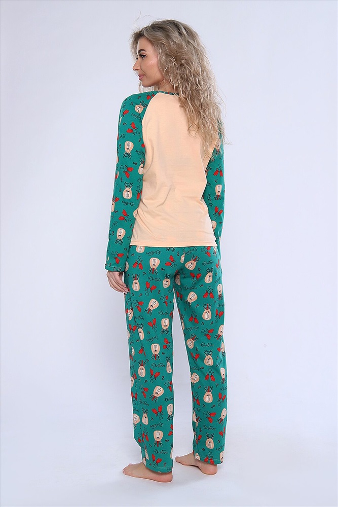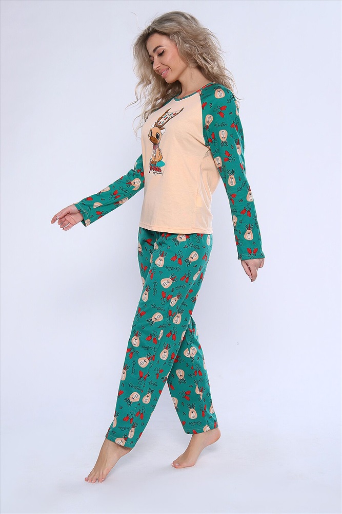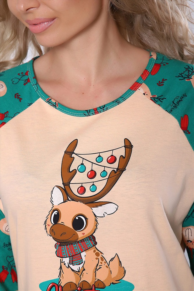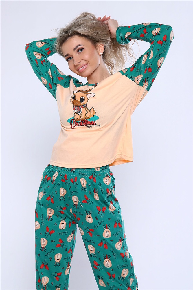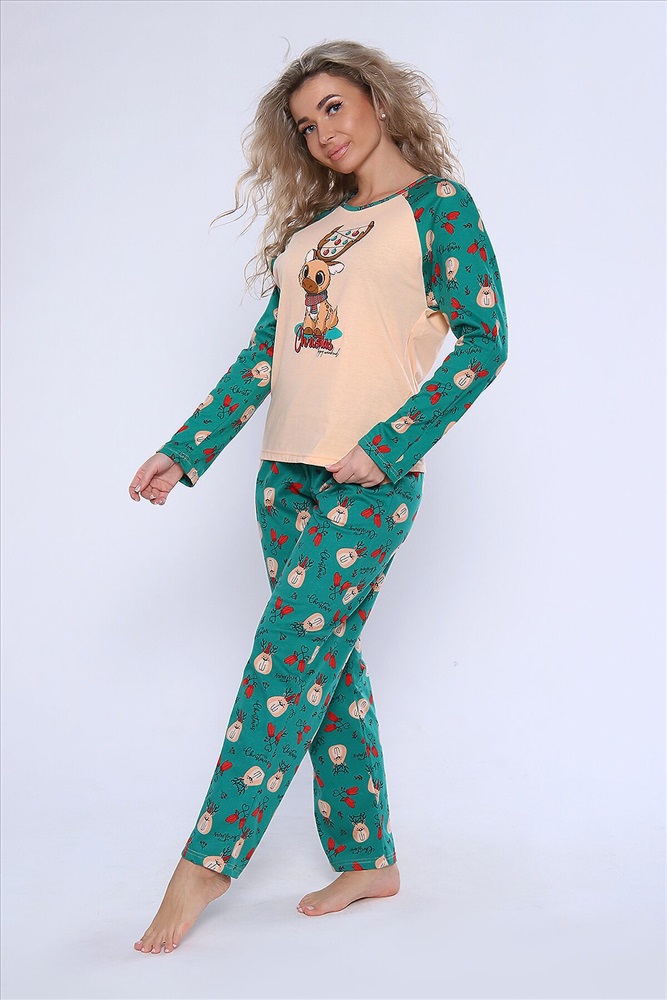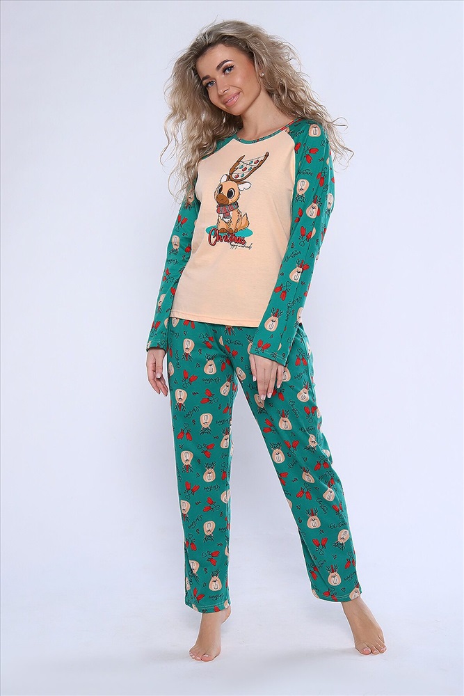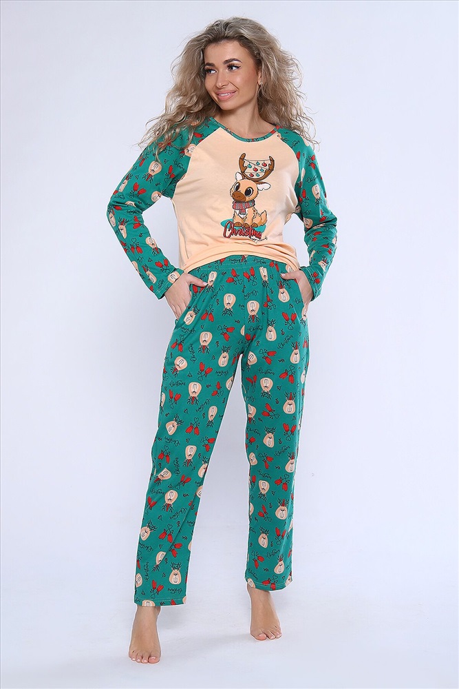 Страна производства: Россия Костюм домашний состоит из кофты с длинным рукавом и брюк. Брюки с карманами. Кофта с рукавами - реглан и принтом. Удобный и практичный вариант для дома и сна.