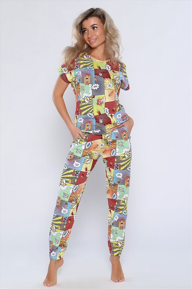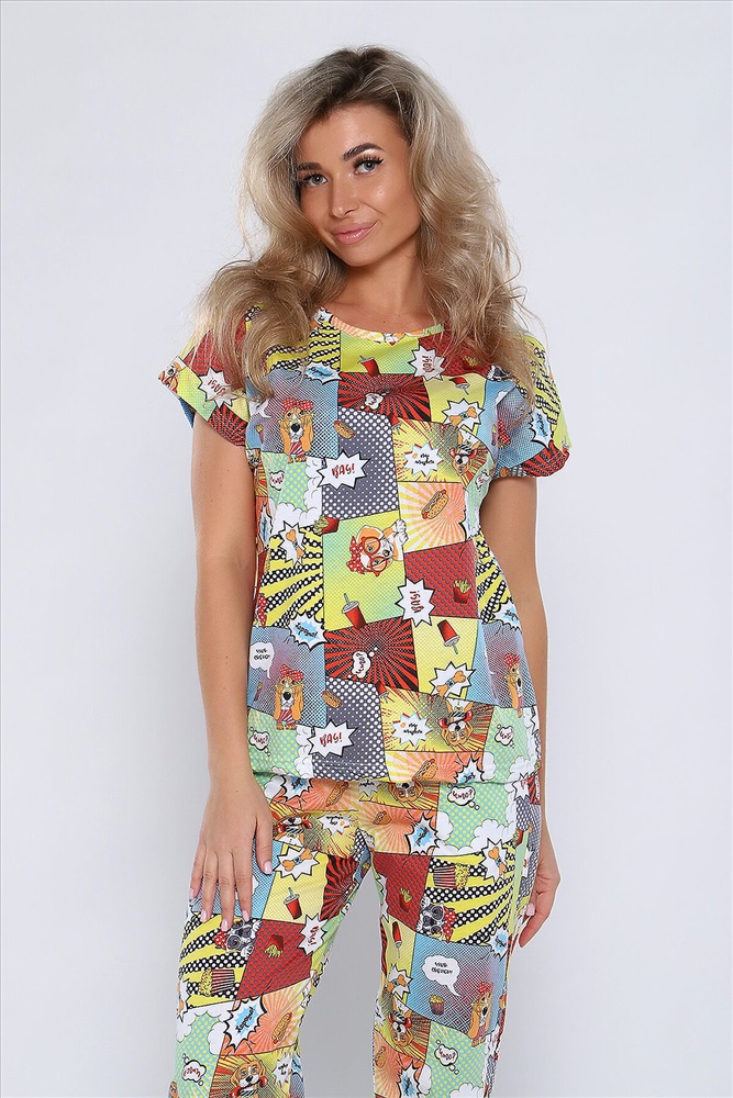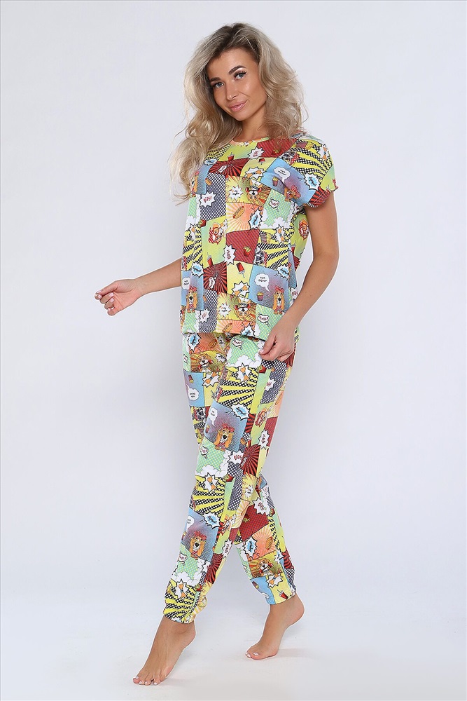 ID товара: 956632 Состав: 100% Хлопок Сезон: Демисезон Длина: Средняя Фасон: Прямой Рукав: короткие Крой брючин: Зауженный Основная ткань: Хлопок Стиль: Повседневный Вид ткани: Кулирка Страна бренда: Россия Страна производства: Россия Домашний костюм состоит из футболки и брюк. Брюки с карманами, низ на резинке. Футболка свободная со спущенным плечом. Комфортен для повседневной носки. Комментарии к товару