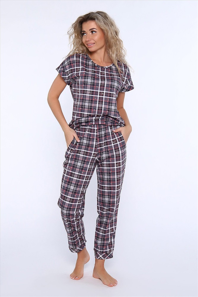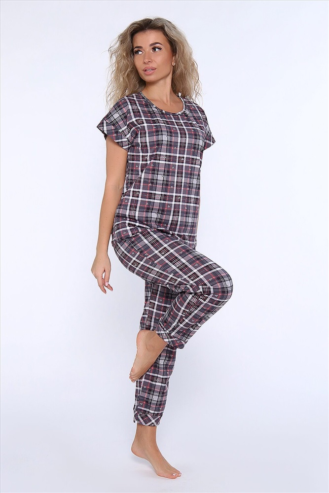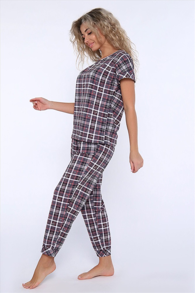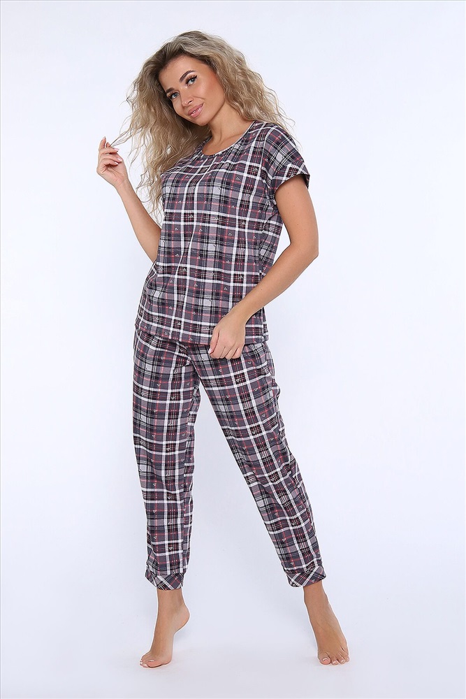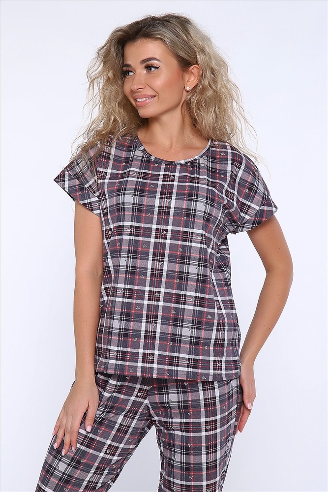 ID товара: 958781 Состав: 100% Хлопок Сезон: Демисезон Длина: Полная Фасон: Полуприлегающий Рукав: короткие Декоративные элементы: Принт Основная ткань: Хлопок Вид ткани: Кулирка Страна бренда: Россия Страна производства: Россия Костюм состоит из футболки и брюк. Футболка с круглым вырезом горловины и манжетами на спущенном плече. Брюки укороченные с манжетами и карманами. Комментарии к товару