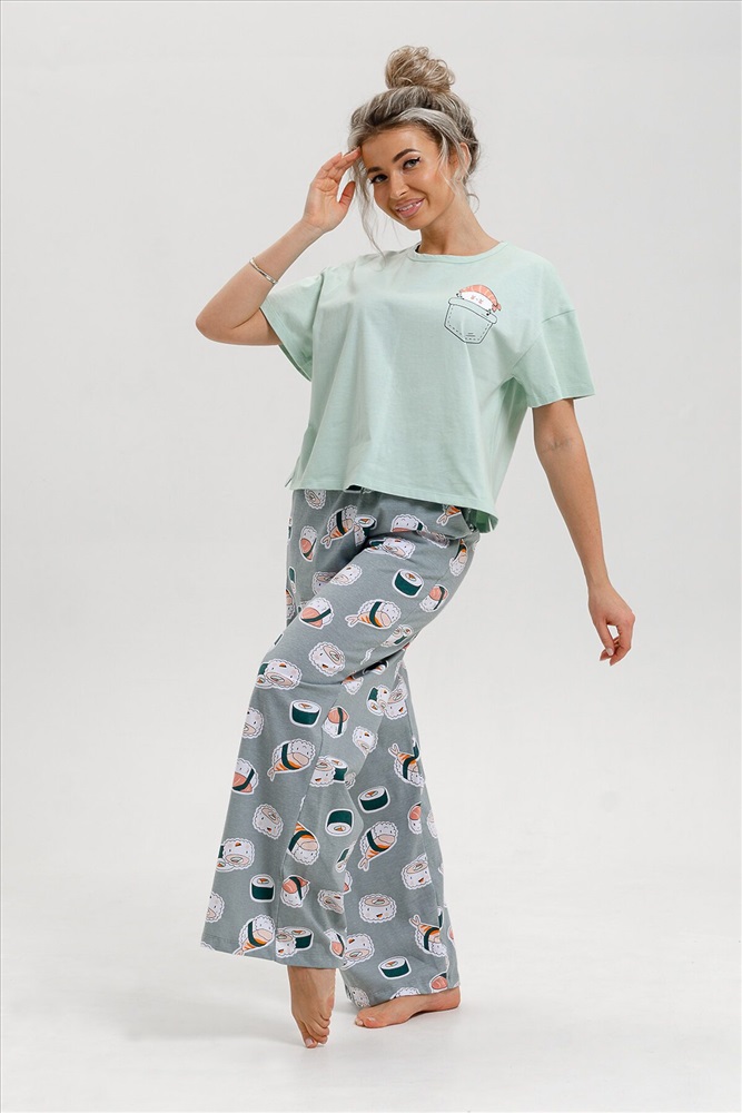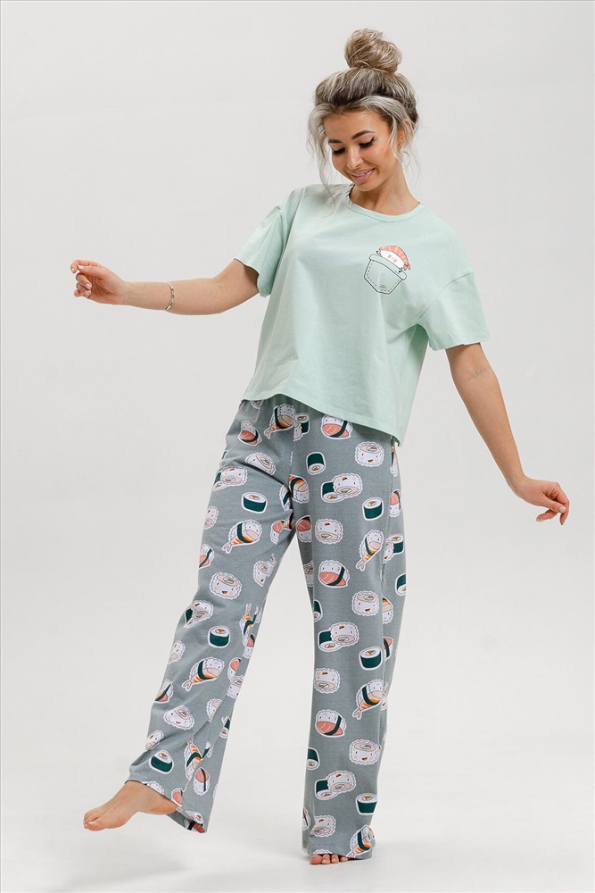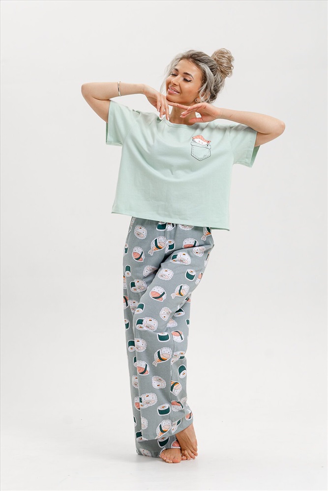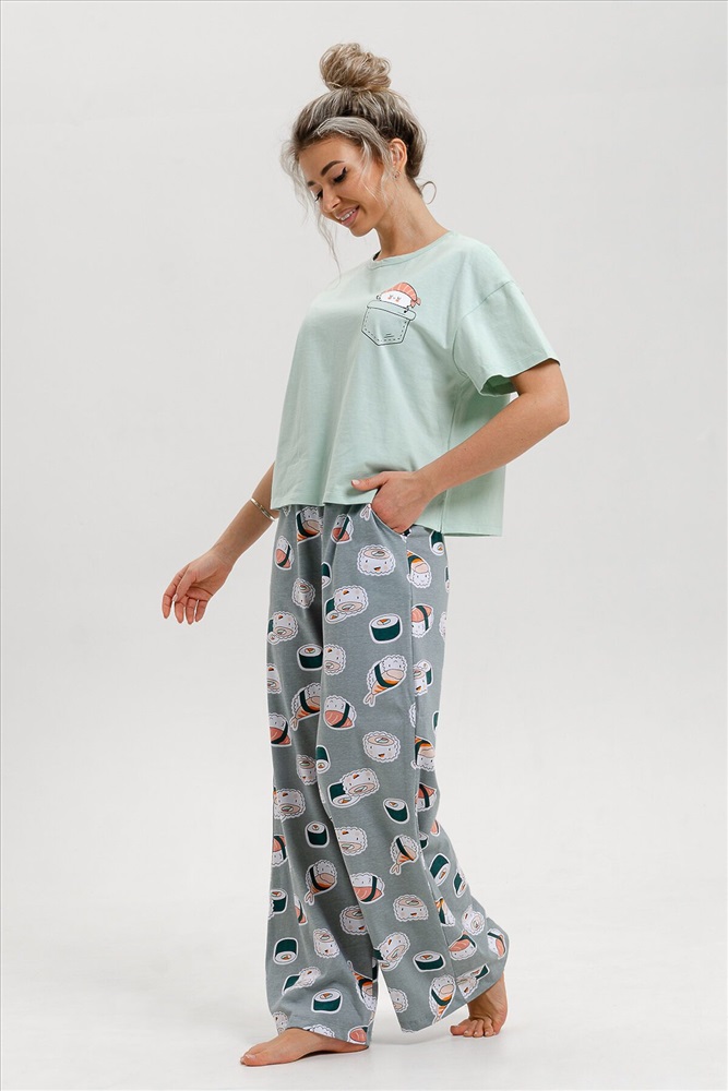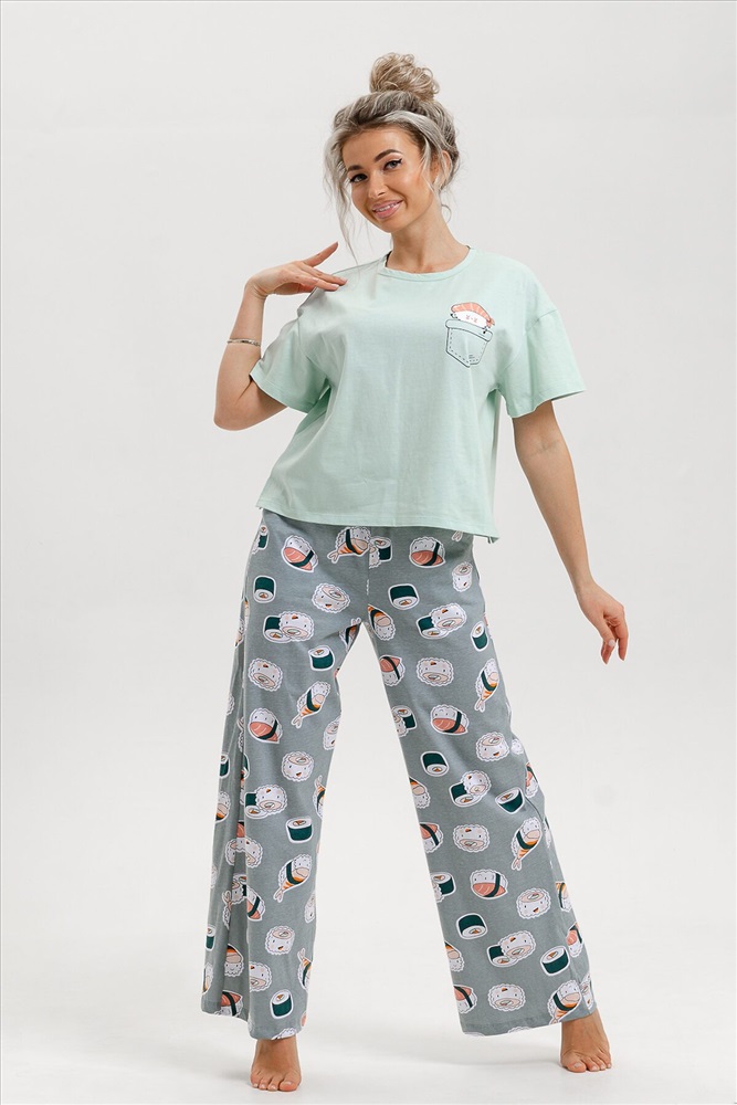 Красивый женский костюм двойка от ивановского производителя состоит из футболки и брюк в стиле палаццо. Этот стильный домашний комплект выполнен из мягкого и приятного на ощупь трикотажного материала из 100% хлопка. Он идеально подойдет для осеннего и весеннего сезонов. Эта женская пижама с брюками кюлотами сочетает женственность и удобство. Отличный выбор для повседневного использования дома и сна. Брюки клеш придают образу особый шарм и делают костюм популярным среди молодежи и подростков. Благодаря широким брюкам, пижама выглядит модно и трендово. Этот ночной комплект предлагается в нескольких размерах, включая большие размеры, и подходит стройным девушкам и женщинам, а также полным дамам plus size. Благодаря свободному крою и удобным брюкам трубам, он также идеально подойдет для беременных женщин, давая им свободу движения и комфорт в домашних условиях. Хлопковая пижама изготовлена из качественного турецкого трикотажа (кулирка), который приятен к телу и обеспечивает комфорт во время ночного отдыха. Она подойдет для любого времени года, особенно на осень, весну, зиму. Этот удобный и стильный комплект пижамы с брюками станет отличным выбором для роддома, повседневного отдыха дома или даже для новогодней фотосессии и пижамной вечеринки. Сочетание комфорта, красоты и функциональности делает эту пижаму невероятно привлекательной. Домашний костюм, пижама - это прекрасный подарок себе, маме, сестре, бабушке, жене на новый год, день рождения или без повода.