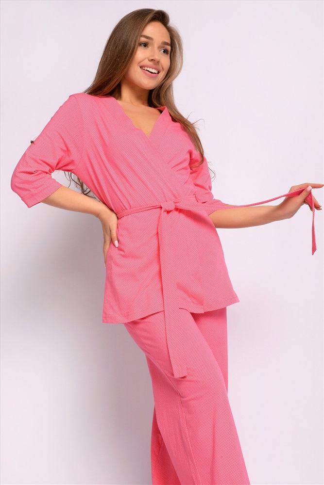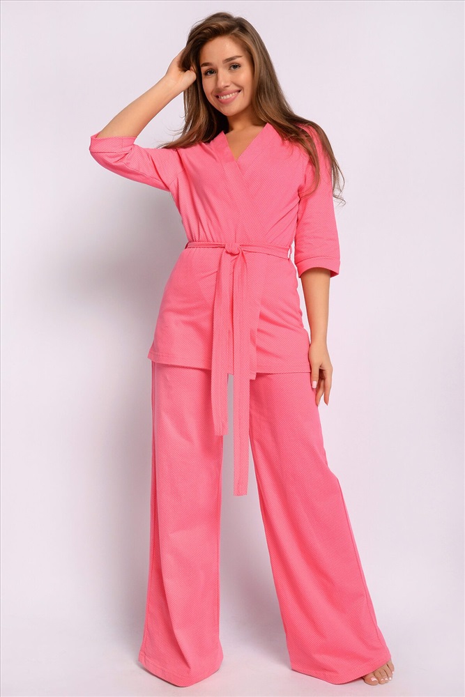 ID товара: 927302 Состав: 100% Хлопок Сезон: Весна/Лето Длина: Удлиненная Фасон: Прямой Рукав: 3/4 Крой брючин: Расклешенный Декоративные элементы: Пояс Основная ткань: Хлопок Стиль: Повседневный Вид ткани: Кулирка Страна бренда: Россия Страна производства: Россия Идеальный новый женский костюм двойка из нашей коллекции Harmony состоит из свободных штанов и халата-кимоно с рукавом три четверти, что идеально подходит для повседневной носки. Мягкий и приятный к телу женский комплект, не стесняет движения. Широкая резинка не давит и хорошо тянется. Хлопок 100% не садится после стирки, не меняет цвет и не скатывается. Они обеспечивают отличную вентиляцию и позволяют вашей коже дышать, не создавая дискомфорта. Будь то прогулка по городу или отдых на пляже, наш костюм двойка женский летний будет вашим незаменимым спутником. Без лишних деталей, без ярких принтов, актуальный горох. Отличный вариант для тех, кто ценит минимализм. При этом очень женственный и нежный цвет. Широкий размерный ряд позволяет приобретать ее и взрослым женщинам, и молодым девушкам, и девочкам подросткам. С нами вы получите костюм двойку свободные штаны и кимоно, который прослужит вам долгие годы. Наши домашние костюмы двойки также идеально подходят для беременных женщин. С их помощью вы сможете чувствовать себя комфортно и стильно на любом этапе беременности. этапе беременности. . Для долгосрочного пользования стирайте при 30 градусах. Закажите наш костюм прямо сейчас и наслаждайтесь комфортом и стильным видом каждый день. Комментарии к товару