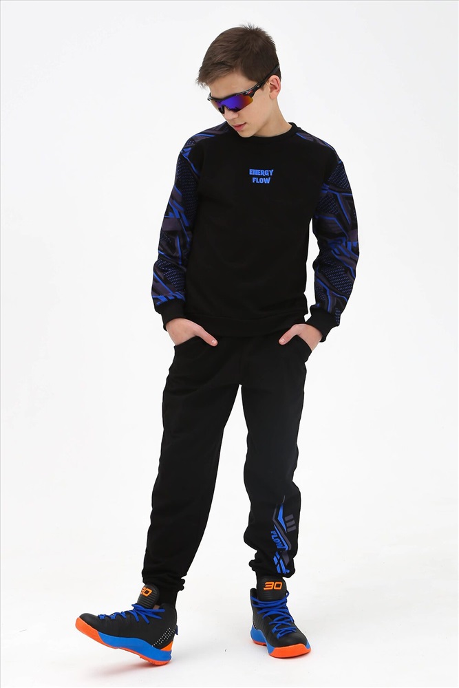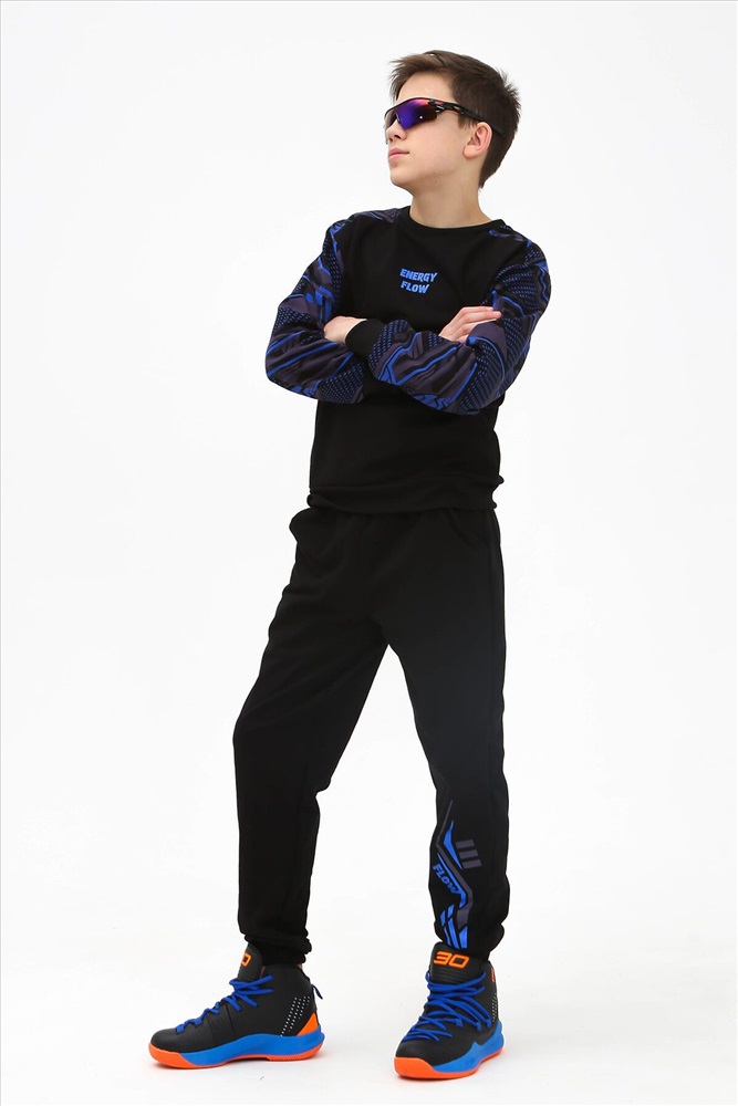 Страна производства: Россия Костюм свободного кроя выполнен из футера 2-х нитки. Состоит из толстовки и брюк. Толстовка с манжетами и поясом из эластичного трикотажа. Рукав втачной со спущенной линией плеча. Брюки свободной посадки с карманами и манжетами из эластичного трикотажа.