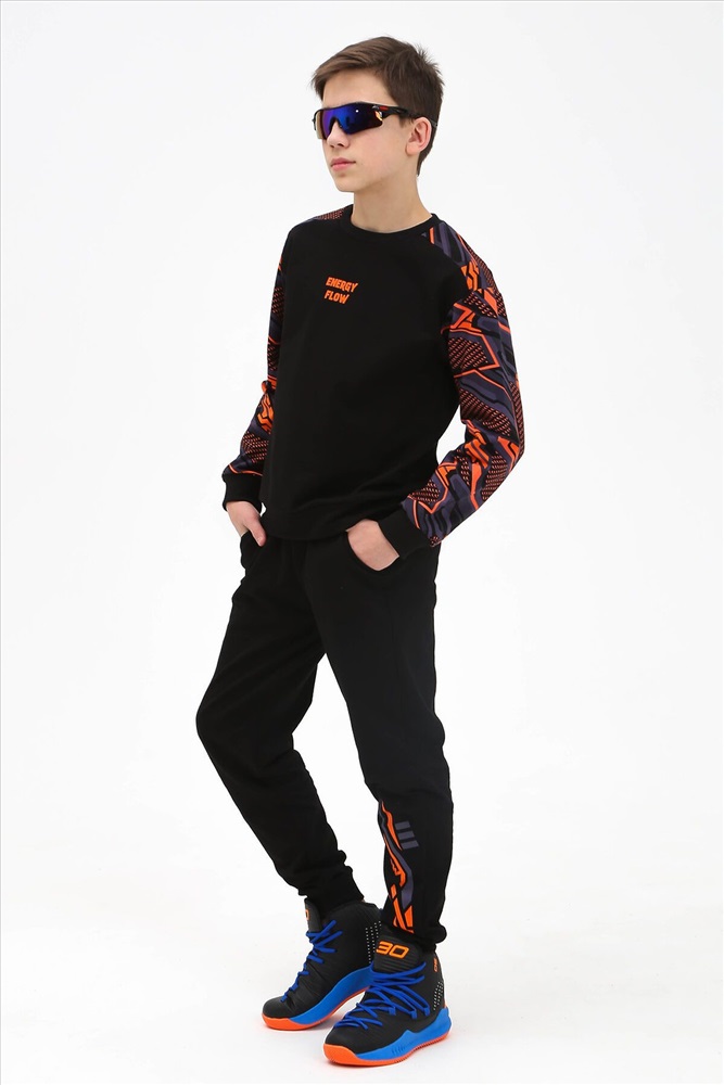 ID товара: 985686 Состав: 75% Хлопок, 25% Полиэстер Сезон: Весна/Лето Длина: Полная Фасон: Полуприлегающий Рукав: длинные Крой брючин: Зауженный Рисунок: Абстракция Тип карманов: В шве Декоративные элементы: Принт Основная ткань: Хлопок Стиль: повседневный Вид ткани: Футер 2-х нитка Страна бренда: Россия Страна производства: Россия Костюм свободного кроя выполнен из футера 2-х нитки. Состоит из толстовки и брюк. Толстовка с манжетами и поясом из эластичного трикотажа. Рукав втачной со спущенной линией плеча. Брюки свободной посадки с карманами и манжетами из эластичного трикотажа. Комментарии к товару