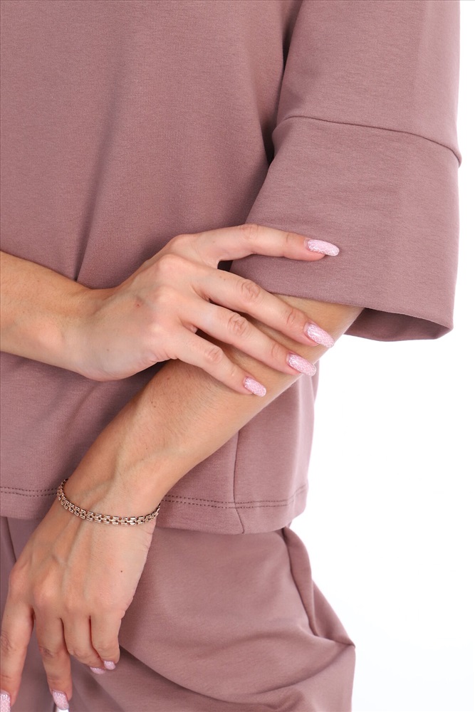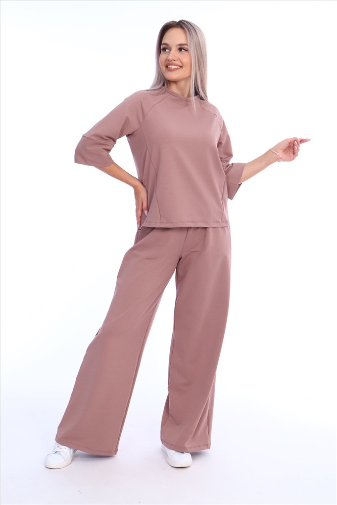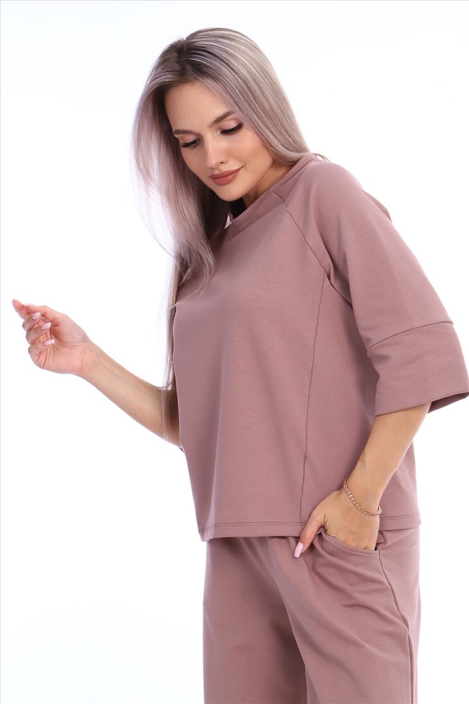 ID товара: 926375 Состав: Хлопок 75%; Полиэстер 20%; Лайкра 5% Сезон: Весна/Лето Длина: Средняя Фасон: Свободный крой Рукав: До локтя Крой брючин: Широкий Тип карманов: В боковом шве Основная ткань: Хлопок Стиль: Повседневный Вид ткани: Футер 3-х нитка Страна бренда: Россия Страна производства: Россия Этот уютный женский комплект идеально подходит для домашнего отдыха и непринужденных выходов. Изготовленный из мягкого и комфортного футера, он обеспечивает непревзойденный комфорт и свободу движений. Брюки палаццо обладают широким покроем и эластичным поясом, который идеально облегает талию.Кофта с рукавом три четверти позволяет чувствовать себя комфортно в любой ситуации. Комментарии к товару