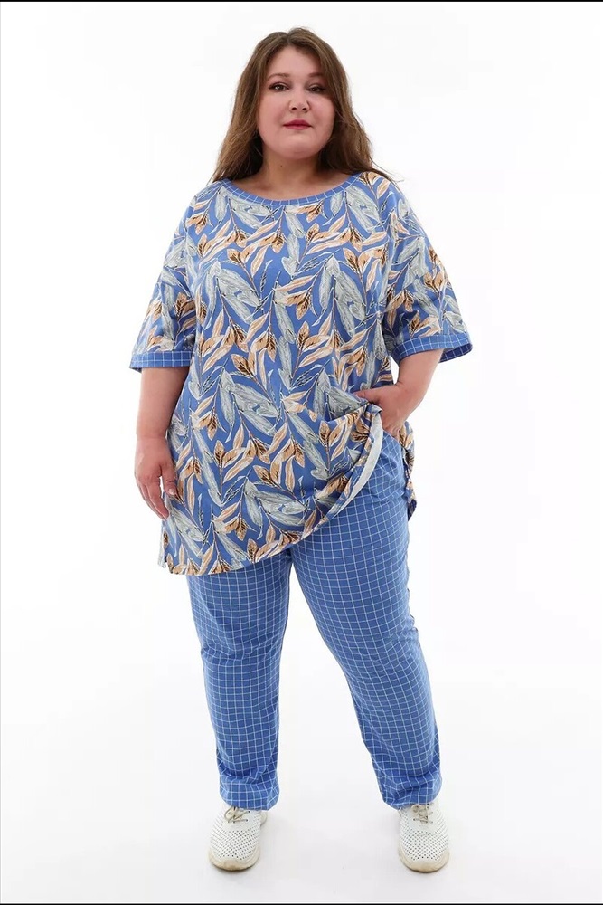 ID товара: 1033298 Состав: 100% Хлопок Сезон: Весна/Лето Длина: Полная Фасон: Свободный Рукав: 3/4 Крой брючин: Прямой Рисунок: Клетка, цветочный Тип карманов: С отрезным бочком Декоративные элементы: Принт Основная ткань: Хлопок Стиль: повседневный Вид ткани: Кулирка Страна бренда: Россия Страна производства: Россия Костюм с брюками большого размера из 100% хлопка - идеальный выбор для полных женщин, которые ищут комфортную и стильную одежду для летнего сезона. Этот костюм предлагает удлиненную футболку с длинными рукавами, которые закрывают локти, и легкие летние брюки. Костюм обеспечивает максимальный комфорт и свободу движений. Хлопок - это дышащий материал, который позволяет коже дышать и не вызывает раздражения. Он также обладает отличной впитывающей способностью, поэтому вы можете быть уверены, что ваша кожа будет оставаться сухой и комфортной даже в самые жаркие дни. Костюм имеет широкий диапазон размеров от 64 до 74, что делает его идеальным для полных женщин. Он предлагает свободный крой, который обеспечивает комфорт и не стесняет движений. Благодаря своему простому и элегантному дизайну, этот костюм подходит для различных ситуаций - от повседневных прогулок до отдыха на даче. Костюм включает в себя удлиненную футболку с длинными рукавами, которые закрывают локти. Это обеспечивает дополнительную защиту от солнца и комфорт во время активных действий. Легкие летние брюки добавляют легкости и свежести образу, делая его идеальным для жарких летних дней. Если вы ищете летний костюм большого размера из 100% хлопка, который сочетает в себе комфорт и стиль, то эта модель отличный выбор. Приобретите этот костюм прямо сейчас и наслаждайтесь комфортом и свежестью. Комментарии к товару