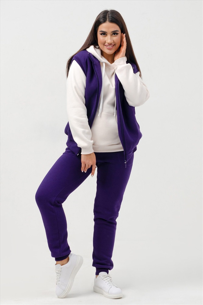 Женский костюм тройка - идеальный вариант для стильных и активных представительниц прекрасного пола. Этот теплый спортивный костюм выполнен из футера 3-х нитка, что обеспечивает его прочность и долговечность. Подходит для использования в осенне-зимний период, когда уют и комфорт особенно важны. Костюм имеет капюшон, который придаст дополнительное тепло в прохладную погоду. Благодаря своей утепленной конструкции этот костюм подойдет как для активного отдыха, так и для прогулок и путешествий. Он прекрасно сядет на любую фигуру, включая беременных, благодаря своему оверсайз и свободному крою. Также, этот стильный женский костюм доступен в больших размерах, чтобы каждая женщина смогла подобрать подходящий для себя вариант. Наслаждайтесь комфортом и подчеркивайте свой современный и модный стиль с этим зимним и осенним трикотажным костюмом. Костюм женский - это отличный выбор для любителей активного отдыха и занятий спортом. Он не только создаст чувство комфорта и тепла, но и подчеркнет ваш стиль и оригинальность. Основные составляющие этого костюма - свободные брюки, толстовка и трикотажная жилетка на молнии. Благодаря футеру 3-х нитка, он будет служить вам верой и правдой на протяжении долгого времени. Мягкий и приятный на ощупь материал обеспечит вам незабываемый комфорт в холодные и ветреные дни. Очень модный и стильный костюм больших размеров, который подойдет для различных сезонов года, включая зиму и осень. Не пропустите возможность пополнить свою гардеробную коллекцию этим великолепным женским костюмом. Будьте на верхней позиции модного стиля с нашим костюмом.