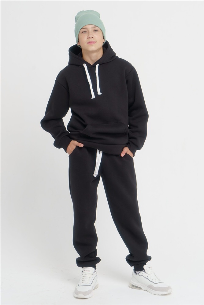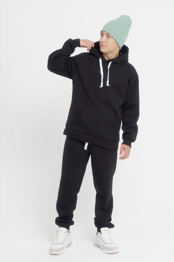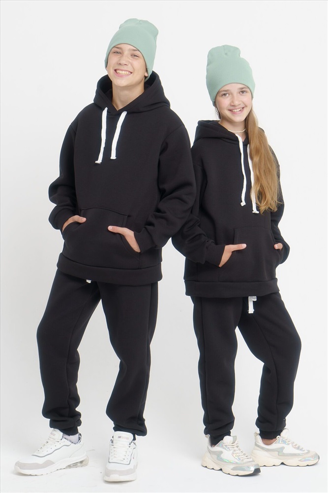 ID товара: 932917 Состав: 75% Хлопок, 25% Полиэстер Сезон: Весна/Лето Длина: Средняя Фасон: Свободный крой Рукав: длинные Крой брючин: Зауженный Основная ткань: Хлопок Стиль: Повседневный Вид ткани: Футер 3-х нитка с начесом Страна бренда: Россия Страна производства: Россия Спортивный костюм - это выбор для любителей спорта и активного отдыха! Этот комплект станет незаменимым не только в весенний, но и в летний период. Мягкий костюмчик с начесом доступен в различных размерах от детского до подросткового от 134 см до 170см, что позволит выбрать подходящий вариант как для мальчиков, так и для девочек. Он состоит из толстовки и брюк (джоггеров или спортивок). Сшит из турецкого дышащего трикотаж футера 3-х нитки с начёсом, высшего качества Пенье. Состав содержит 75% хлопка, это значит, что на нем не образуются катышки, он не деформируется и выдерживает до 100 стирок без потери вида. Толстовка удлиненной формы имеет глубокий капюшон с трикотажной подкладкой, а карман кенгуру добавит удобства. Нежные резинки на рукавах не пропустят холод. Штаны теплые приятные к телу, с боковыми прорезными карманами, резинкой на поясе. Костюм выполнен в стильном оверсайз-фасоне, что позволяет комфортно двигаться и не стеснять движений. Комментарии к товару