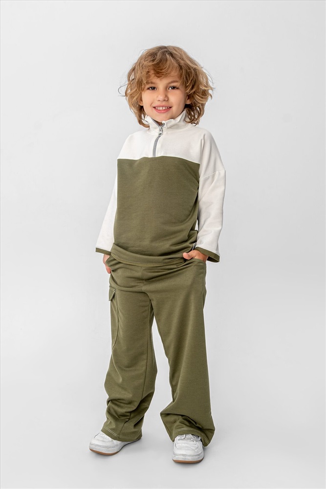 Костюм из футера двунитки. Свитшот и брюки. Свитшот дополнен нашитыми световозвращающими элементами. Брюки прямого кроя с боковыми карманами и накладным карманом на брючине. Легко стирается, не образует катышков, не линяет. Состав 90%хб, 10% п\э