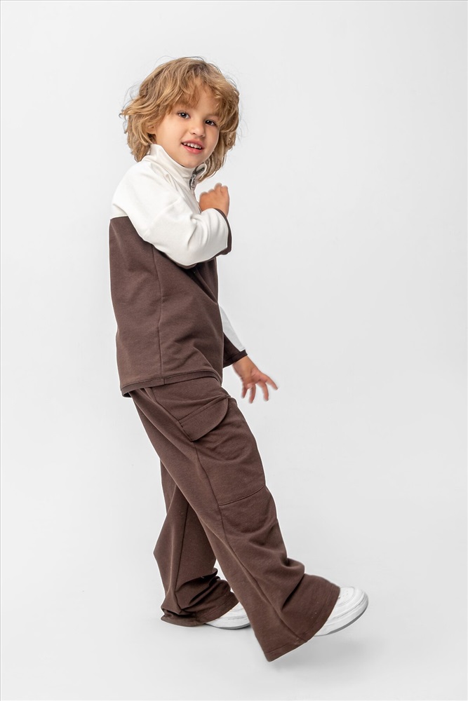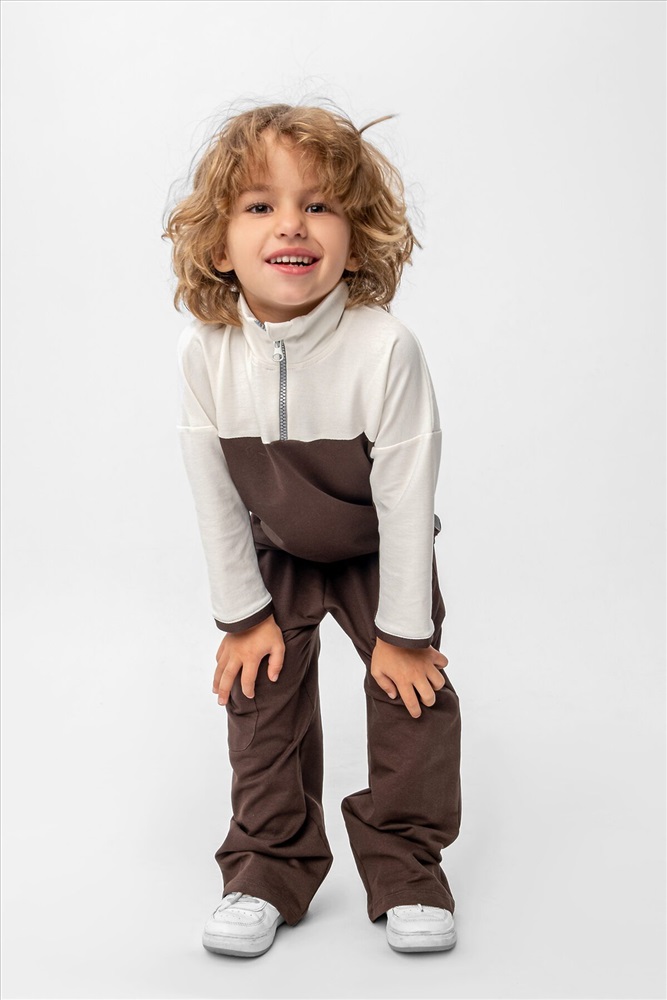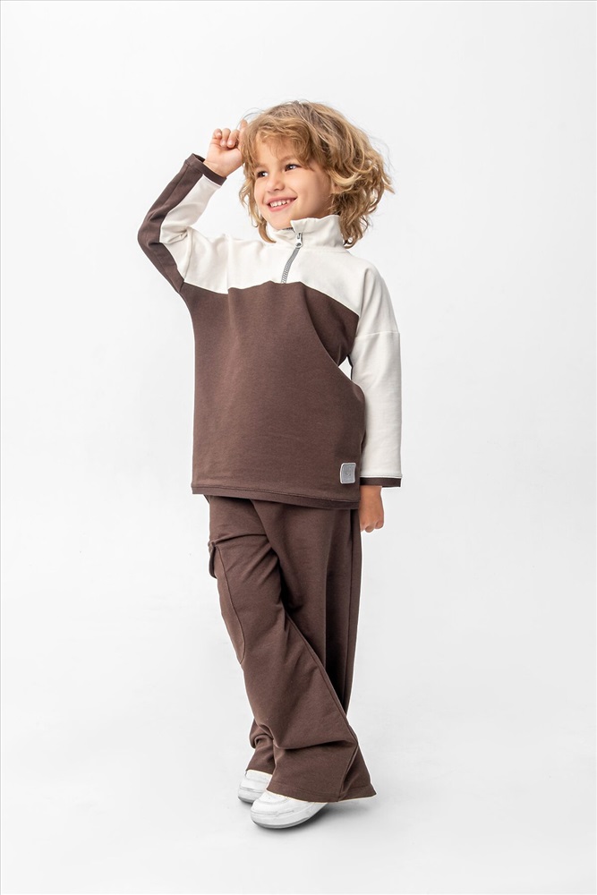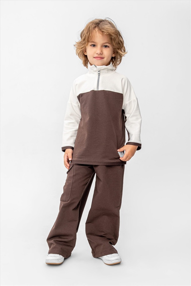 Костюм из футера двунитки. Свитшот и брюки. Свитшот дополнен нашитыми световозвращающими элементами. Брюки прямого кроя с боковыми карманами и накладным карманом на брючине. Легко стирается, не образует катышков, не линяет. Состав 90%хб, 10% п\э