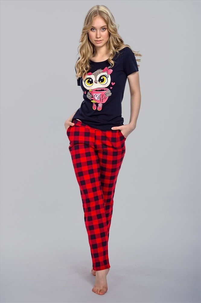 ID товара: 946813 Состав: Хлопок 100% Сезон: Демисезон Длина: Средняя Фасон: Прямой Рукав: короткие Основная ткань: Хлопок Стиль: Повседневный Вид ткани: Кулирка Страна бренда: Россия Страна производства: Россия Красивая женская пижама с брюками. Пижамная футболка однотонная, на футболке выполнена шелкография с выпуклыми буквами. Штаны прямые на резинке с цветочным принтом. Расцветка трикотажной пижамы со штанами позволяет использовать ее в качестве домашнего костюма. Комментарии к товару