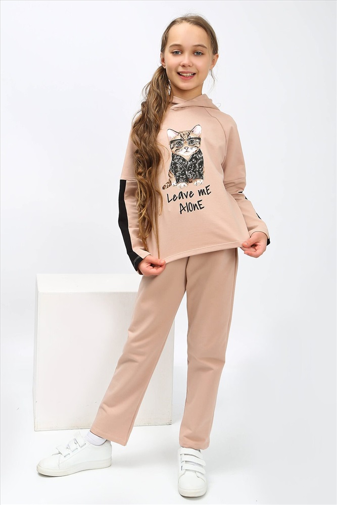 ID товара: 901917 Состав: 54% Полиэстер, 40% Хлопок, 6% Эластан Сезон: Демисезон Длина: Полная Фасон: Прямой Рукав: длинные Крой брючин: Прямой Рисунок: котики Декоративные элементы: С капюшоном Основная ткань: Полиэстер Стиль: Спортивный Вид ткани: Футер 2-х нитка Страна бренда: Россия Страна производства: Россия Костюм из ткани с добавлением эластана. Джемпер свободного покроя с капюшоном, немного укороченный. Рукав реглан с вертикальной вставкой из ткани контрастного цвета в нижней части. Полочка украшена шелкографией. Брюки прямого покроя, немного укороченные, с карманами, на широком поясе с резинкой. Ткань прочная, при носке не деформируется. Комментарии к товару