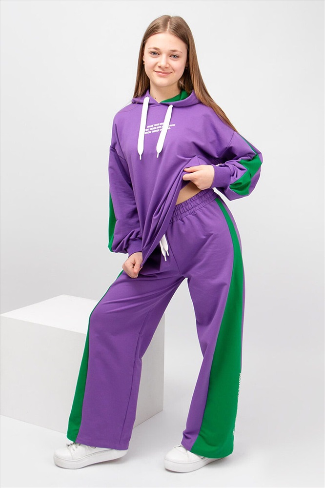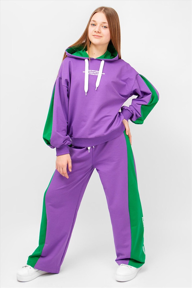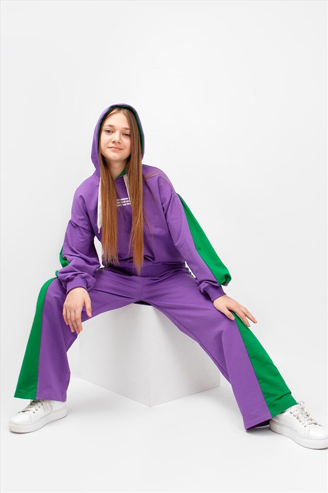 ID товара: 948899 Состав: 95% Хлопок, 5% Эластан Сезон: Демисезон Длина: Средняя Фасон: Свободный крой Рукав: длинные Крой брючин: Широкий Основная ткань: Хлопок Стиль: Спортивный Вид ткани: Футер 2-х нитка Страна бренда: Россия Страна производства: Россия Этот трикотажный комплект для девочек подростков - настоящий тренд сезона! Модный и стильный спортивный костюм, с контрастным сочетанием цветов и принтом в виде надписи, исключительно удобный для активного подростка, обязательно привлечет всеобщее внимание. Джемпер худи с асимметричным низом и капюшоном на шнурке. Широкие свободные брюки палаццо по талии на мягкой, широкой резинке. Комплект идеально подойдет для отдыха, спорта, физкультуры в школе, танцев или осенних прогулок с друзьями. Детский подростковый костюм сшит из мягкого приятного хлопкового трикотажа футер 2-х нитка, которых отлично пропускает воздух и не теряет формы. Ваша дочка, внучка, сестра или племянница будут исключительно рады такому подарку. Размер 140 (рост 134-140 см) длина кофты 52 см, ОГ 84 см, длина рукава от горловины 61 см; длина брюк по боковому шву 88 см, по внутреннему 60 см, ОТ 64 см, ОБ 84 см. Размер 146 (рост 140-146 см) длина кофты 54 см, ОГ 86 см, длина рукава от горловины 62 см; длина брюк по боковому шву 90 см, по внутреннему 62 см, ОТ 66 см, ОБ 86 см. Размер 152 (рост 146-152 см) длина кофты 56 см, ОГ 88 см, длина рукава от горловины 63 см; длина брюк по боковому шву 94 см, по внутреннему 64 см, ОТ 68 см, ОБ 88 см. Размер 158 (рост 152-158 см) длина кофты 56 см, ОГ 92 см, длина рукава от горловины 65 см; длина брюк по бок. шву 96 см, по внутр. 66 см, ОТ 70 см, ОБ 90 см. Размер 164 (рост 158-164 см) длина кофты 58 см, ОГ 94 см, длина рукава от горловины 67 см; длина брюк по бок. шву 98 см, по внутр. 68 см, ОТ 72 см, ОБ 92 см. Комментарии к товару