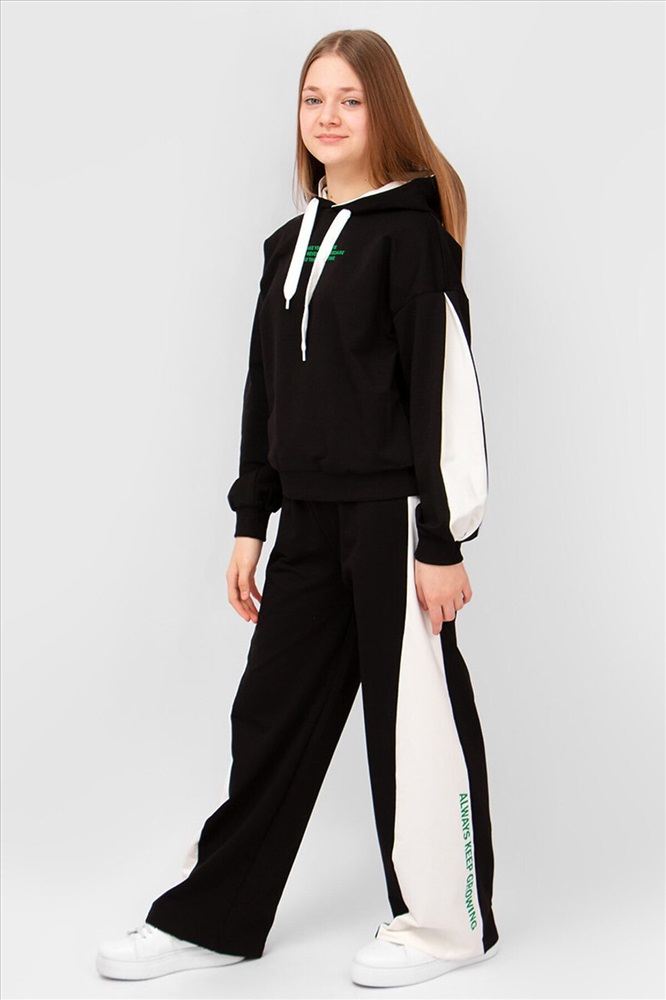 ID товара: 948900 Состав: 95% Хлопок, 5% Эластан Сезон: Демисезон Длина: Средняя Фасон: Свободный крой Рукав: длинные Крой брючин: Широкий Основная ткань: Хлопок Стиль: Спортивный Вид ткани: Футер 2-х нитка Страна бренда: Россия Страна производства: Россия Этот трикотажный комплект для девочек подростков - настоящий тренд сезона! Модный и стильный спортивный костюм, с контрастным сочетанием цветов и принтом в виде надписи, исключительно удобный для активного подростка, обязательно привлечет всеобщее внимание. Джемпер худи с асимметричным низом и капюшоном на шнурке. Широкие свободные брюки палаццо по талии на мягкой, широкой резинке. Комплект идеально подойдет для отдыха, спорта, физкультуры в школе, танцев или осенних прогулок с друзьями. Детский подростковый костюм сшит из мягкого приятного хлопкового трикотажа футер 2-х нитка, которых отлично пропускает воздух и не теряет формы. Ваша дочка, внучка, сестра или племянница будут исключительно рады такому подарку. Размер 140 (рост 134-140 см) длина кофты 52 см, ОГ 84 см, длина рукава от горловины 61 см; длина брюк по боковому шву 88 см, по внутреннему 60 см, ОТ 64 см, ОБ 84 см. Размер 146 (рост 140-146 см) длина кофты 54 см, ОГ 86 см, длина рукава от горловины 62 см; длина брюк по боковому шву 90 см, по внутреннему 62 см, ОТ 66 см, ОБ 86 см. Размер 152 (рост 146-152 см) длина кофты 56 см, ОГ 88 см, длина рукава от горловины 63 см; длина брюк по боковому шву 94 см, по внутреннему 64 см, ОТ 68 см, ОБ 88 см. Размер 158 (рост 152-158 см) длина кофты 56 см, ОГ 92 см, длина рукава от горловины 65 см; длина брюк по бок. шву 96 см, по внутр. 66 см, ОТ 70 см, ОБ 90 см. Размер 164 (рост 158-164 см) длина кофты 58 см, ОГ 94 см, длина рукава от горловины 67 см; длина брюк по бок. шву 98 см, по внутр. 68 см, ОТ 72 см, ОБ 92 см. Комментарии к товару