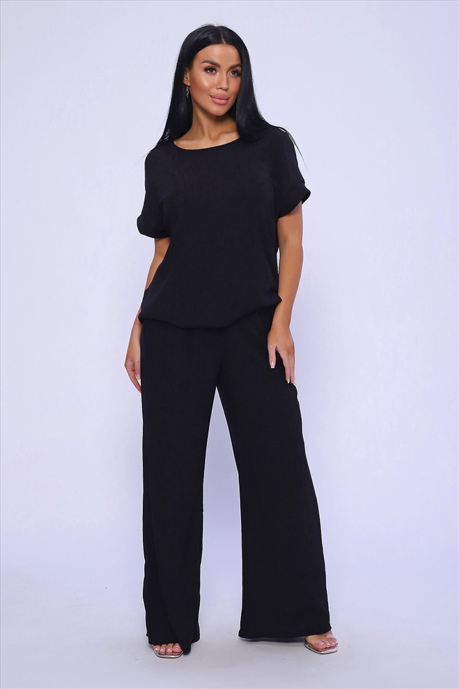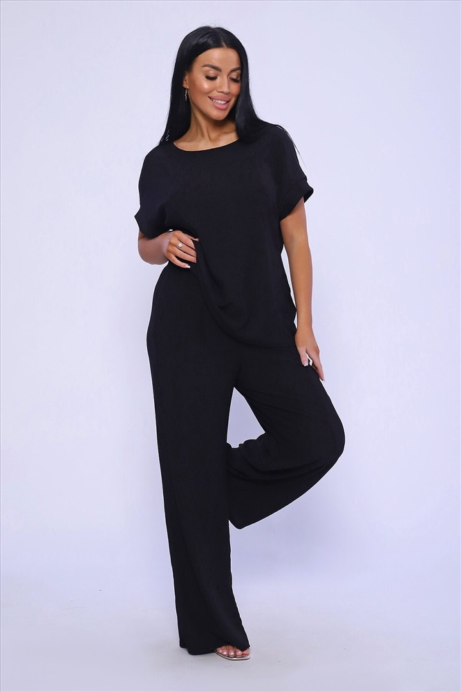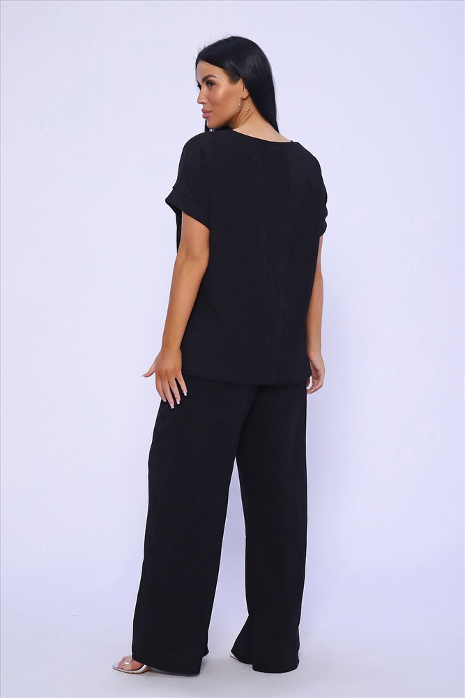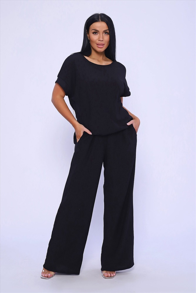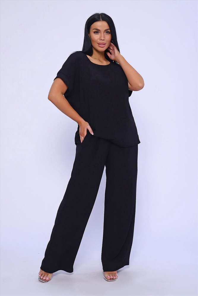 ID товара: 981993 Состав: 100% Полиэстер Сезон: Весна/Лето Длина: Полная Фасон: Свободный Рукав: короткие Крой брючин: Широкий Тип карманов: В шве Основная ткань: Полиэстер Стиль: классический Вид ткани: Жатка Страна бренда: Россия Страна производства: Россия Брюки палаццо и футболка со спущенной проймой и с круглым вырезом горловины из тонкого, струящего материала - жатка. Такой красивый модный костюм не оставит равнодушной ни одну модницу. Вещи представлены стандартных и больших размеров для дам с пышными формами. Расклешенные брючки с завышенной талией на резинке с карманами отличаются удобным кроем, они стандартной длины и превосходно садятся по фигуре женщин, визуально удлиняют ноги и придают силуэту идеальные очертания. Благодаря наличию нагрудных вытачек футболка идеально садиться по фигуре. Комментарии к товару